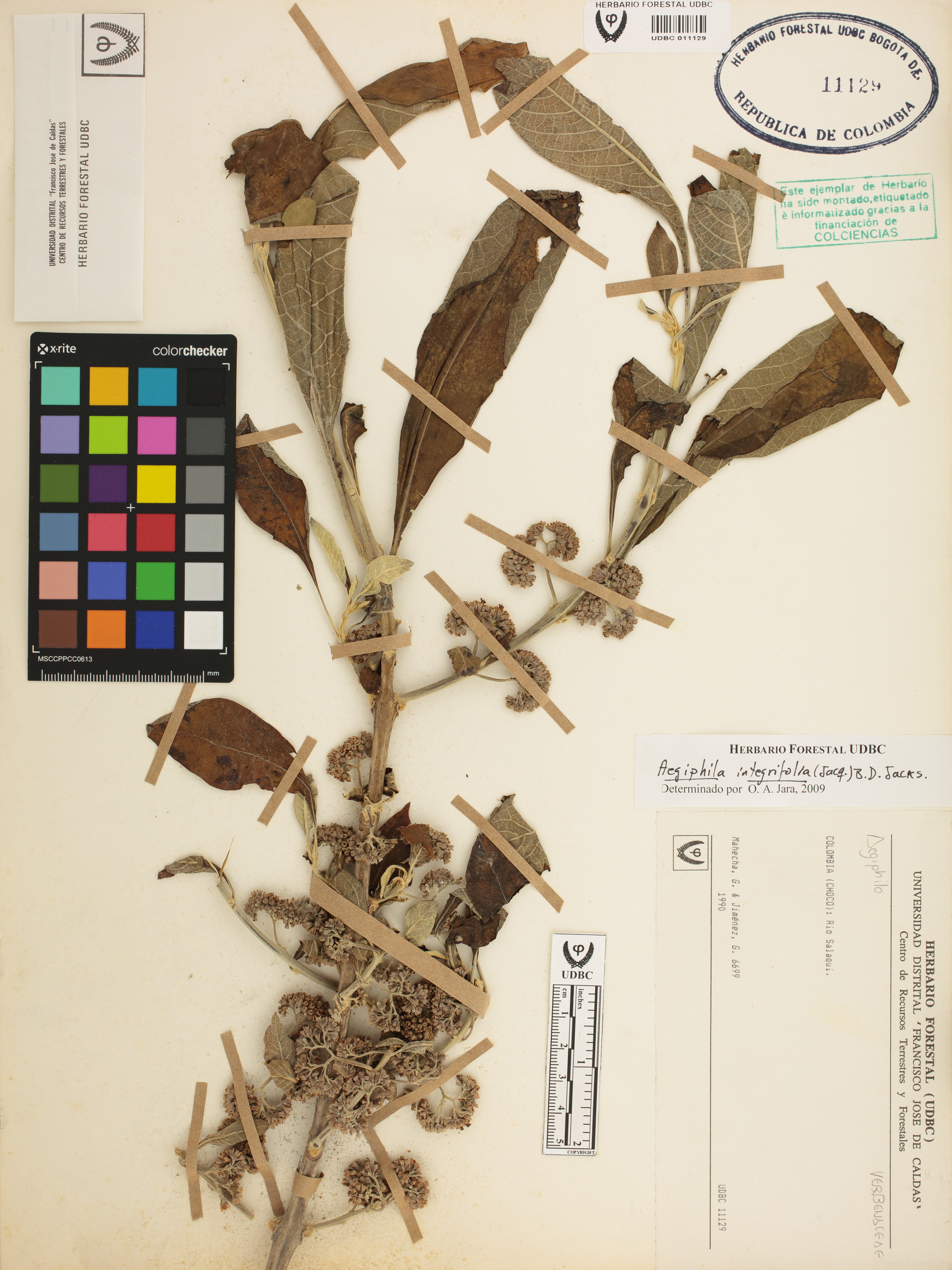Fotografía del ejemplar Mahecha, G. 6699, determinado como Aegiphila integrifolia en el año 2009