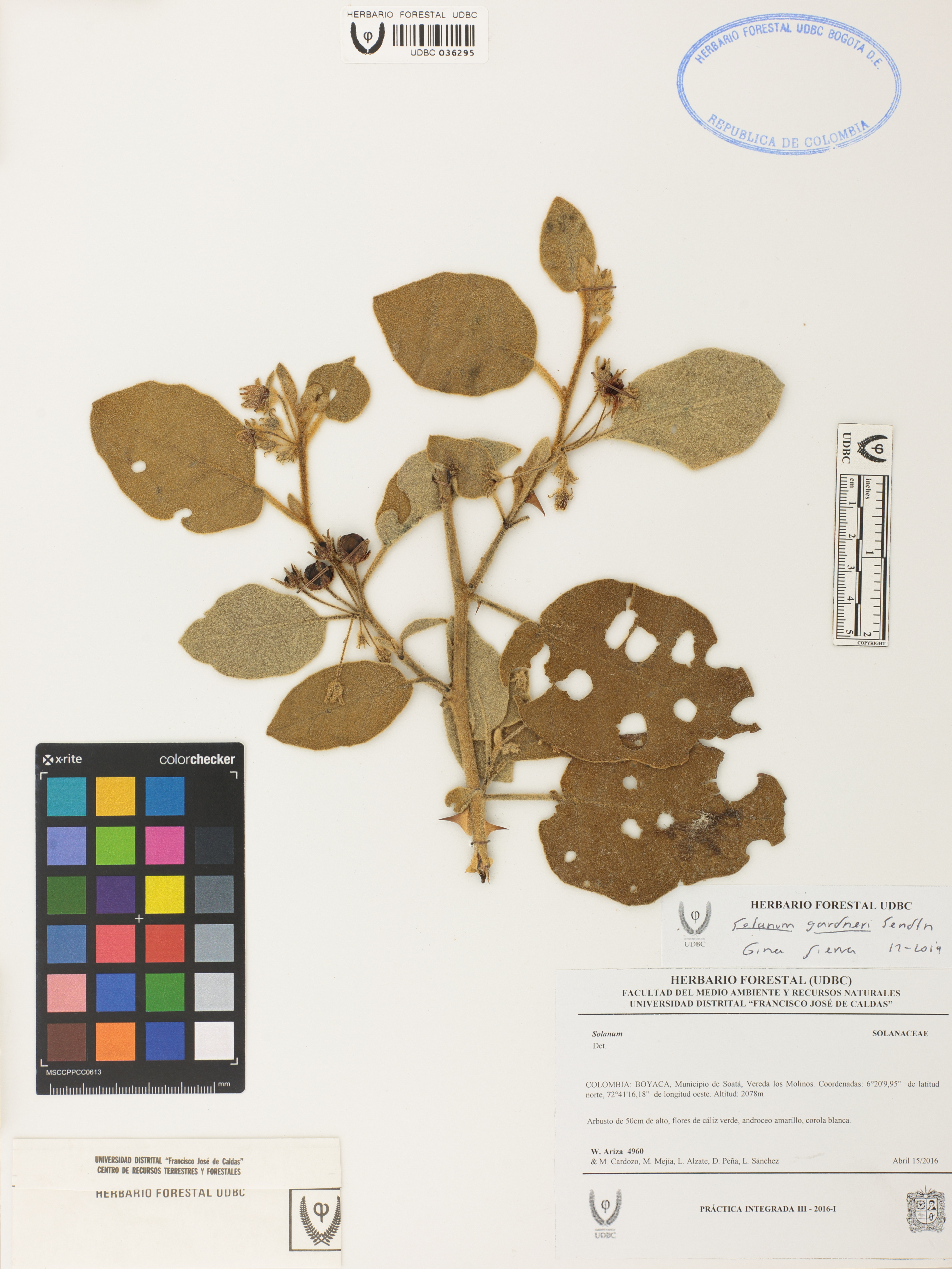 Fotografía del ejemplar Ariza, W. 4960, determinado como Solanum gardneri en el año 2019