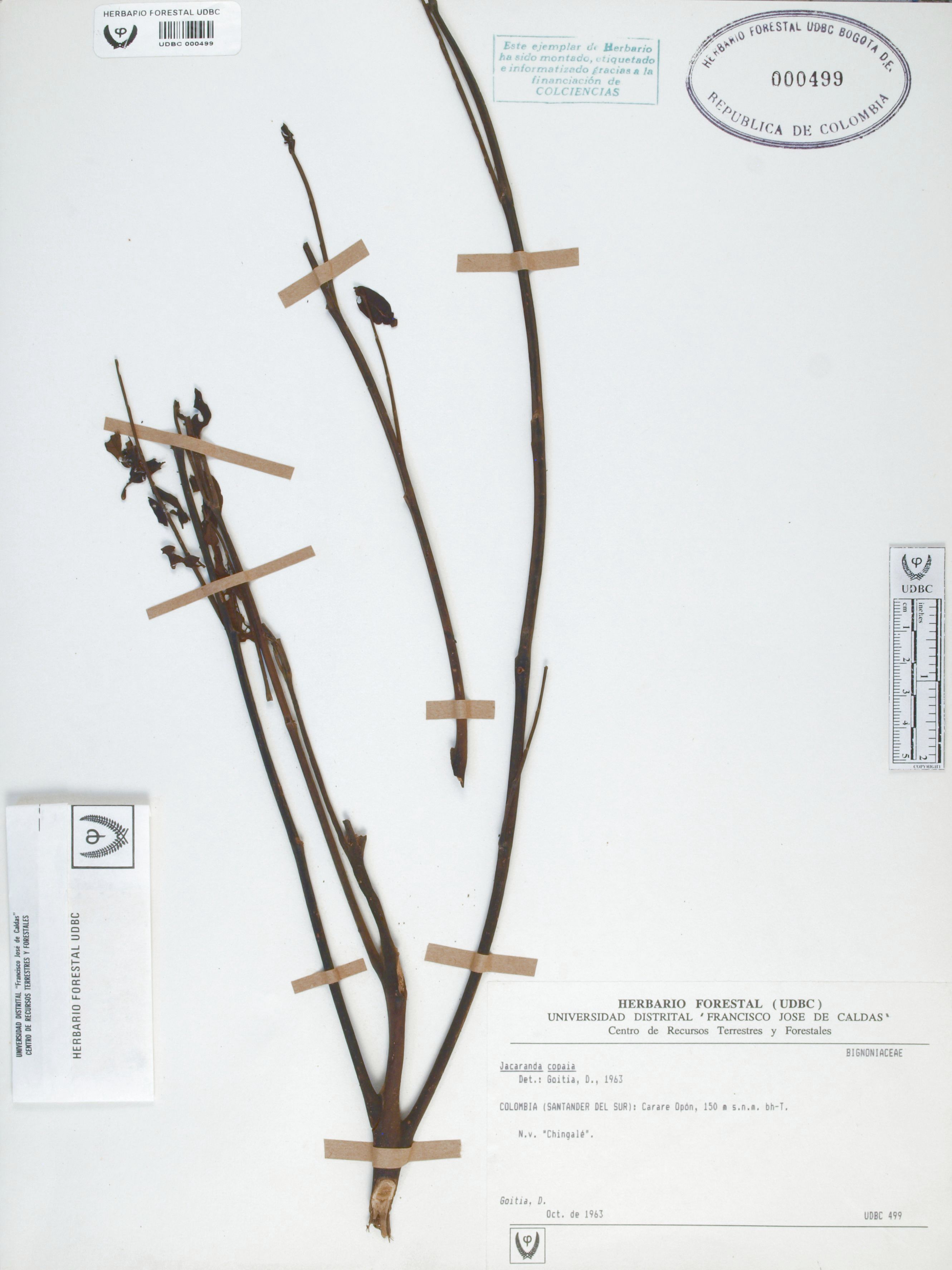 Fotografía del ejemplar Goitia, D., determinado como Jacaranda copaia en el año 1963