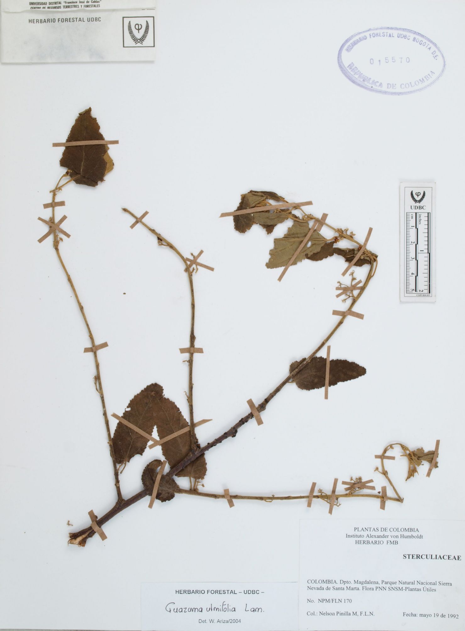 Fotografía del ejemplar Pinilla, N. 170, determinado como Guazuma ulmifolia en el año 2004