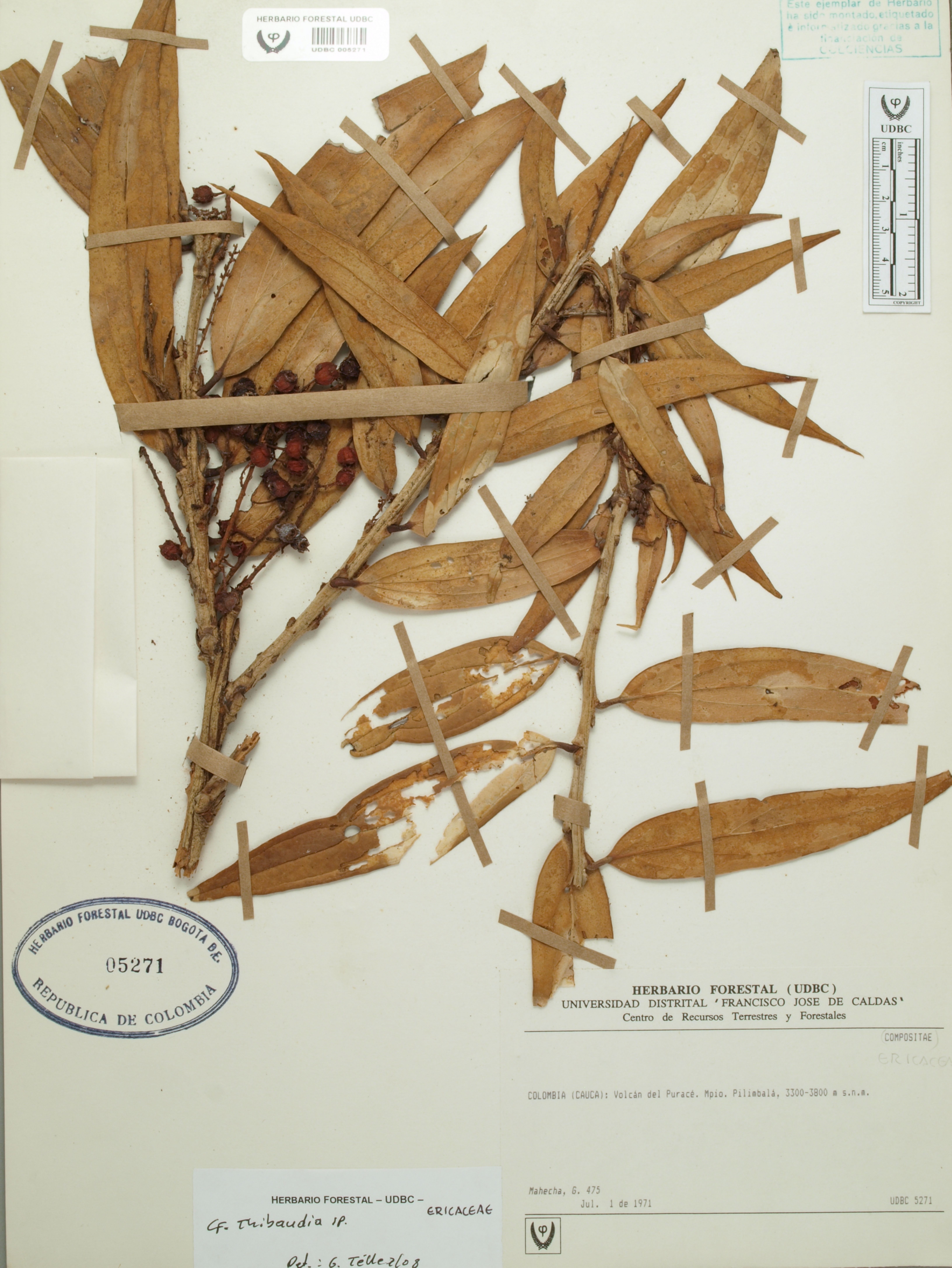 Fotografía del ejemplar Mahecha, G. 475, determinado como Thibaudia sp. en el año 2008