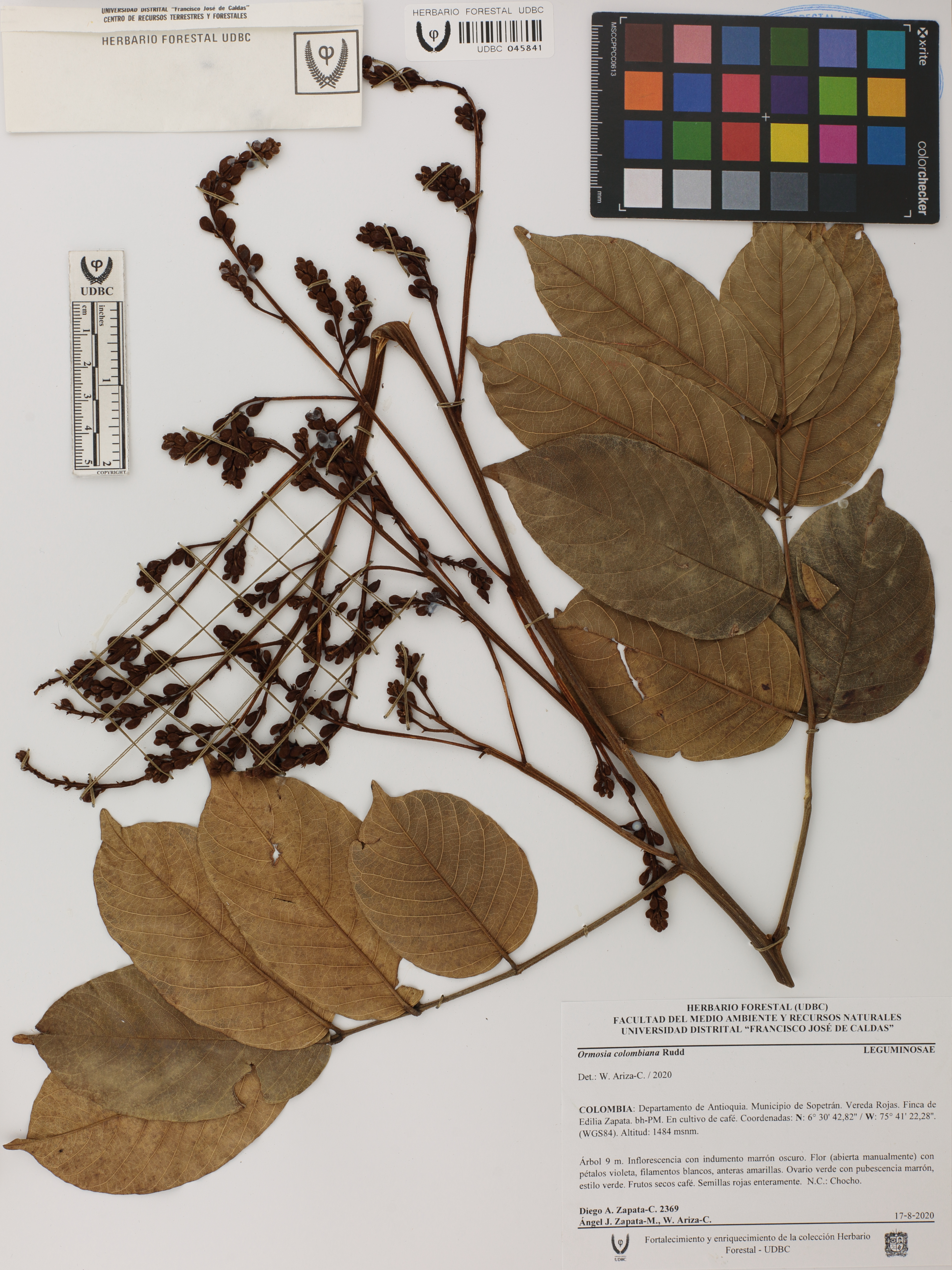 | dc.description | Fotografía del ejemplar Zapata-C., D. 2369, determinado como Ormosia colombiana en el año 2020 | |