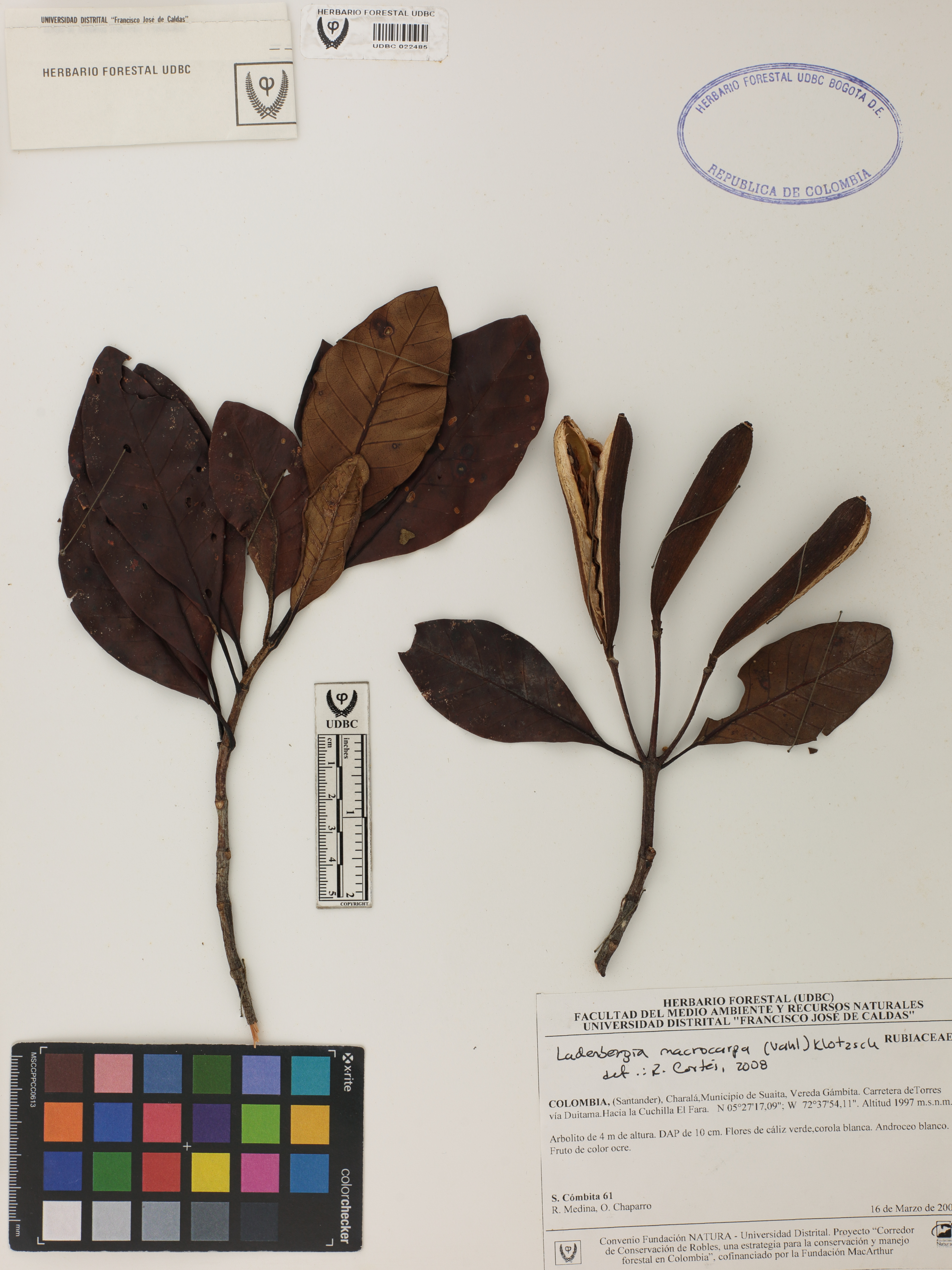 | dc.description | Fotografía del ejemplar Cómbita, S. 61, determinado como Ladenbergia macrocarpa en el año 2008 | |
