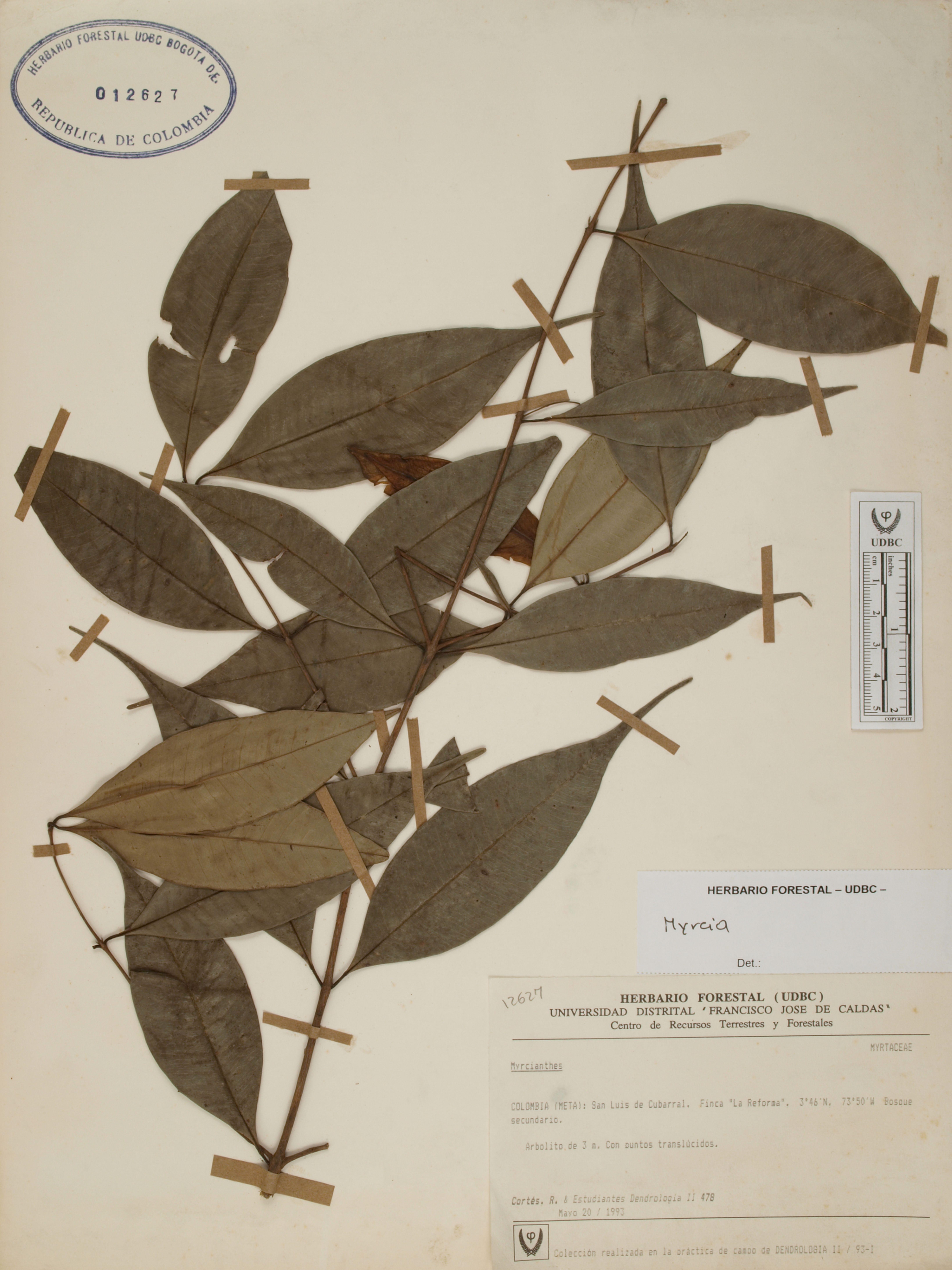 | dc.description | Fotografía del ejemplar Cortés-B., R. 478, determinado como Myrcia sp. | |