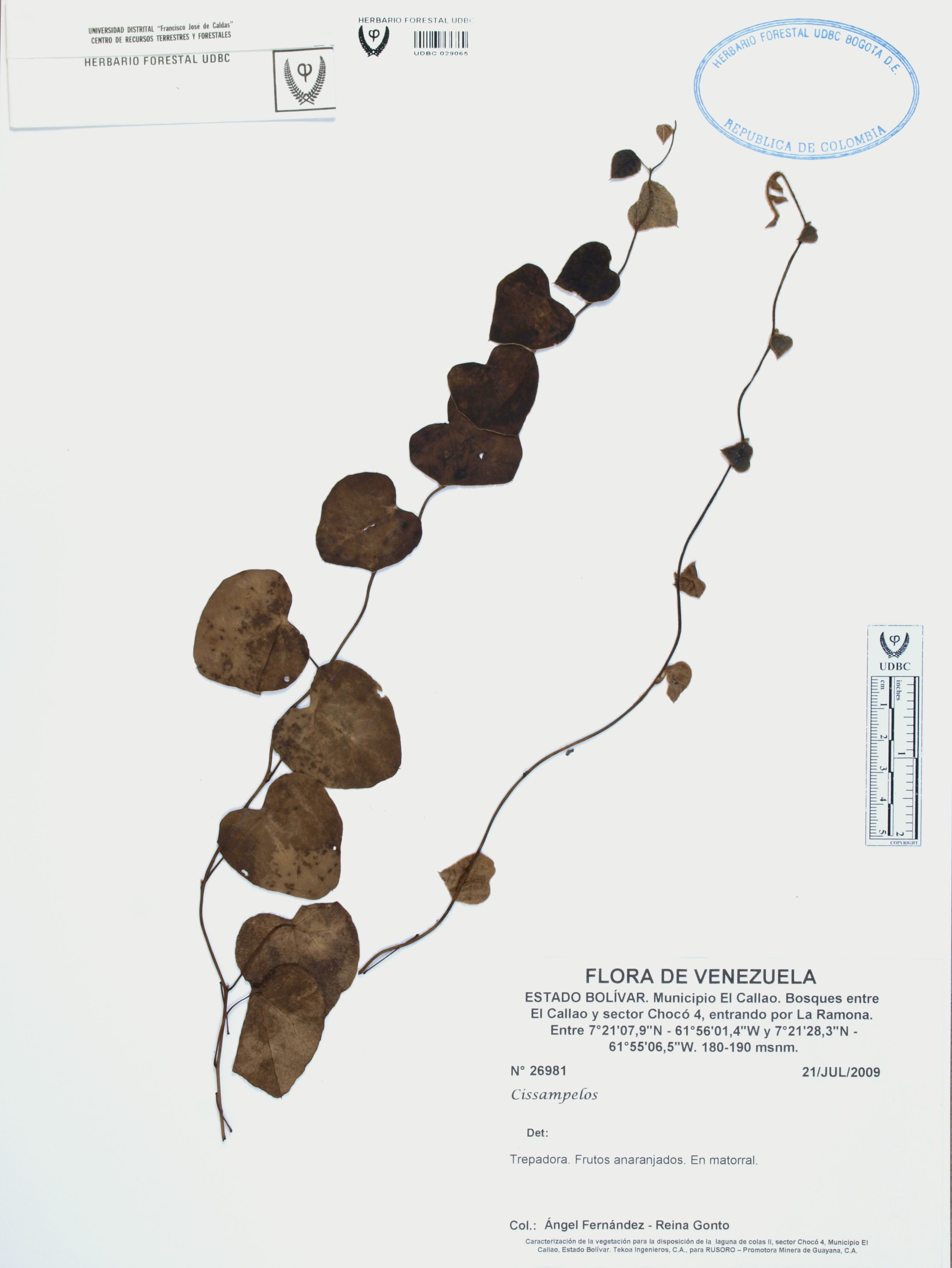 | dc.description | Fotografía del ejemplar Fernández, A. 26981, determinado como Cissampelos sp. | |