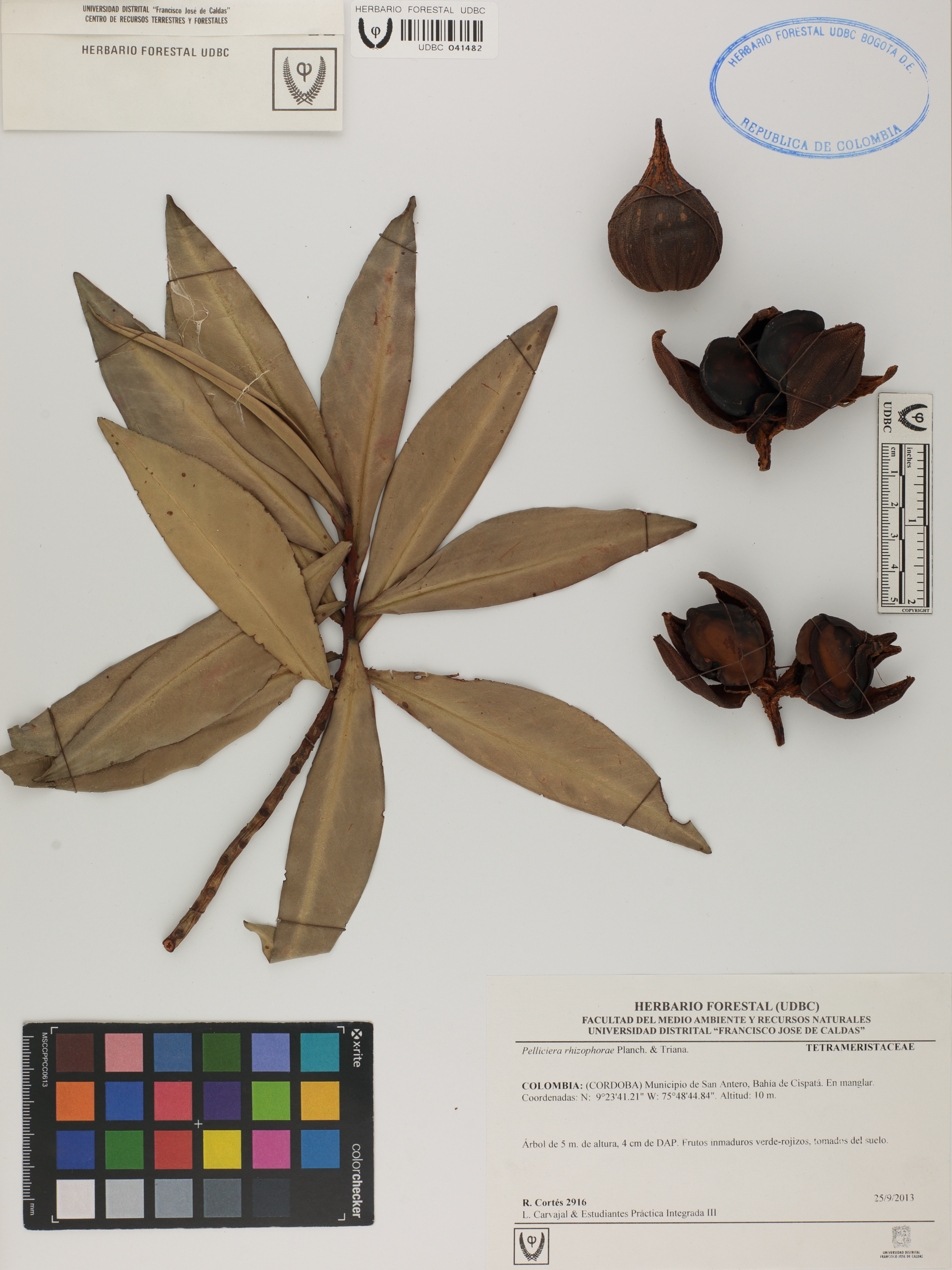 Fotografía del ejemplar Cortés, R. 2916, determinado como Pelliciera rhizophorae