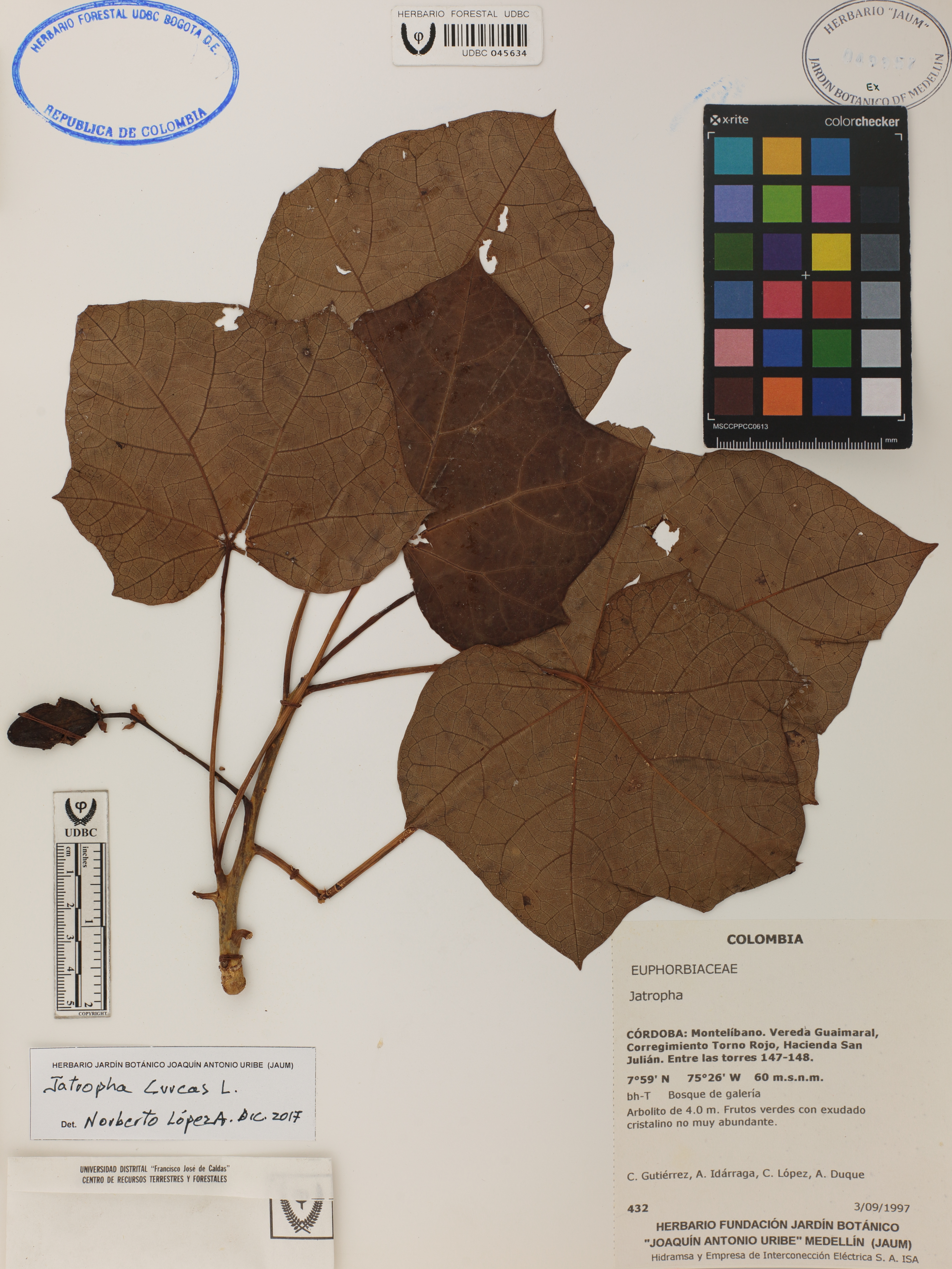 Fotografía del ejemplar Gutiérrez, C. 432, determinado como Jatropha curcas en el año 2017
