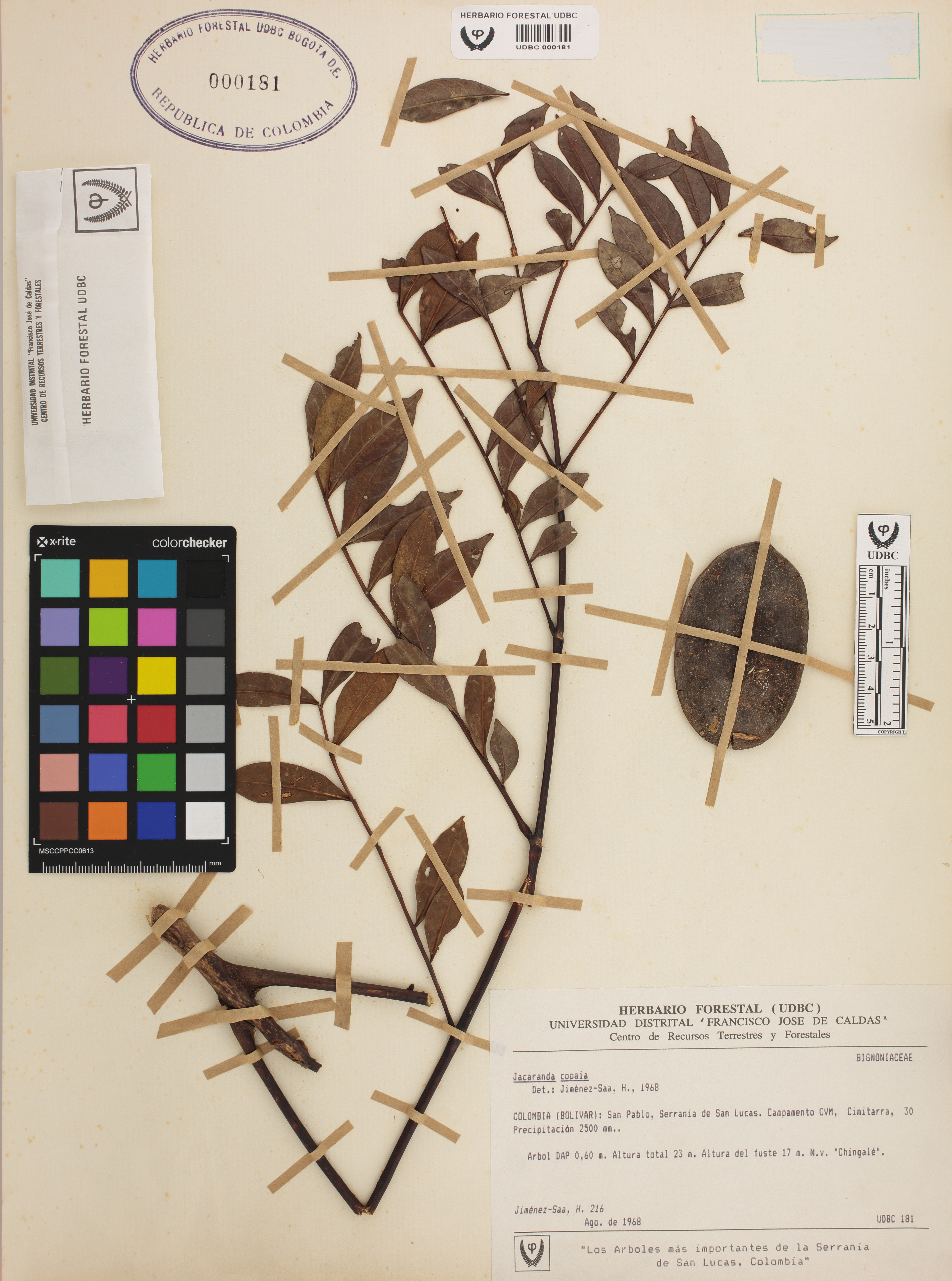 | dc.description | Fotografía del ejemplar Jiménez-Saa, H. 216, determinado como Jacaranda copaia en el año 1968 | |