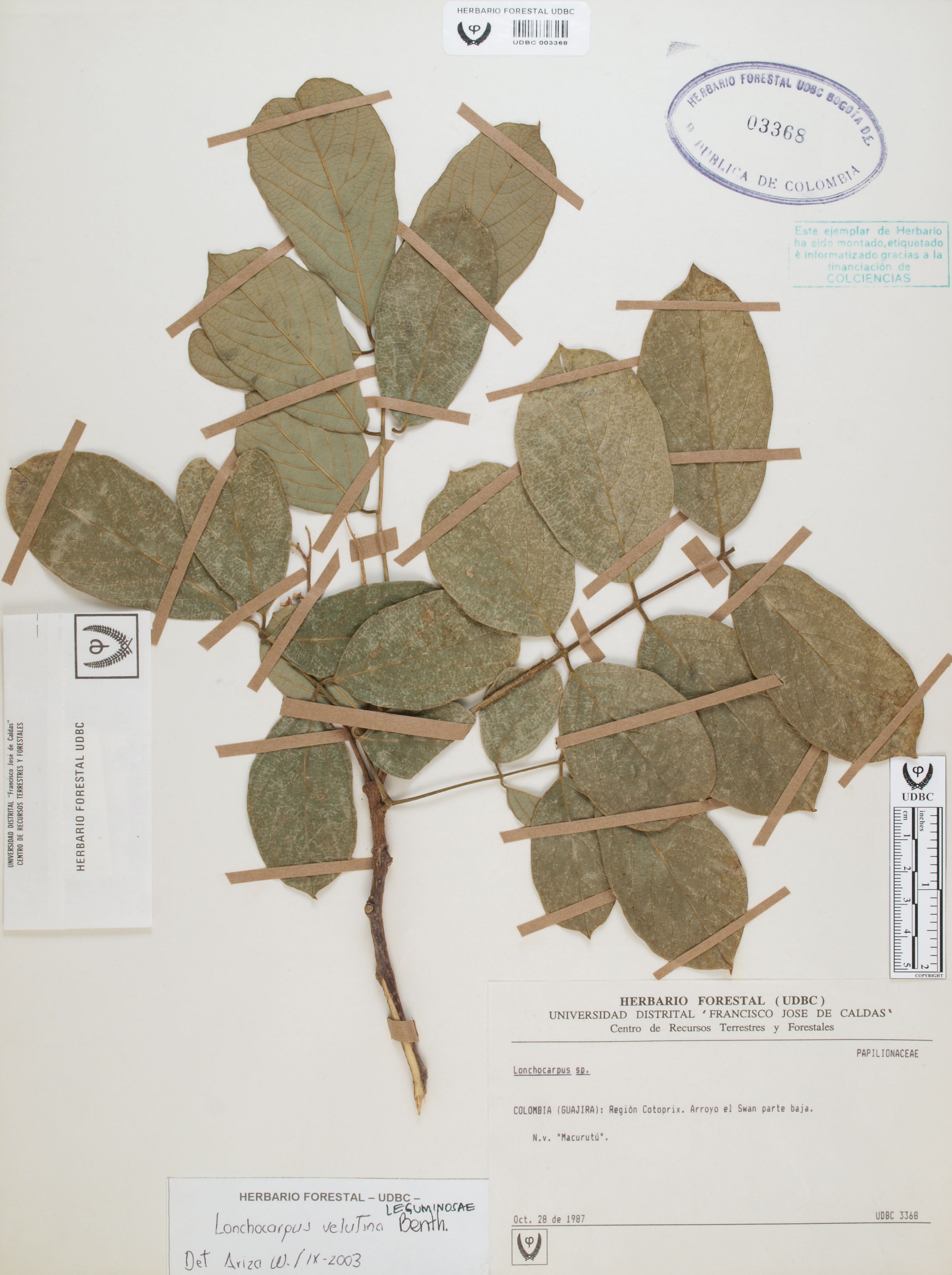 Fotografía del ejemplar SD, determinado como Lonchocarpus velutinus en el año 2003