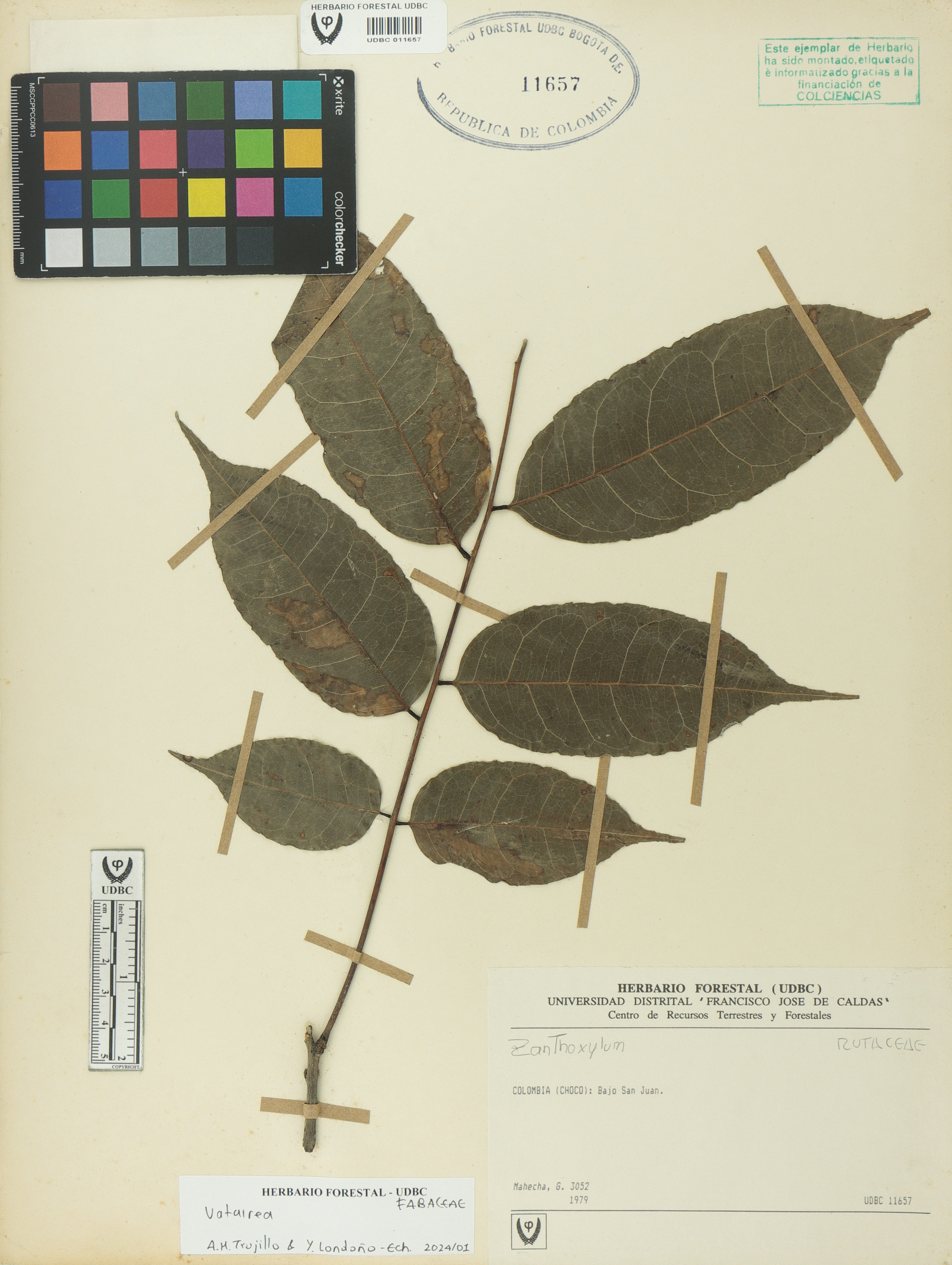 Fotografía del ejemplar Mahecha, G. 3052, determinado como Vatairea sp. en el año 2024