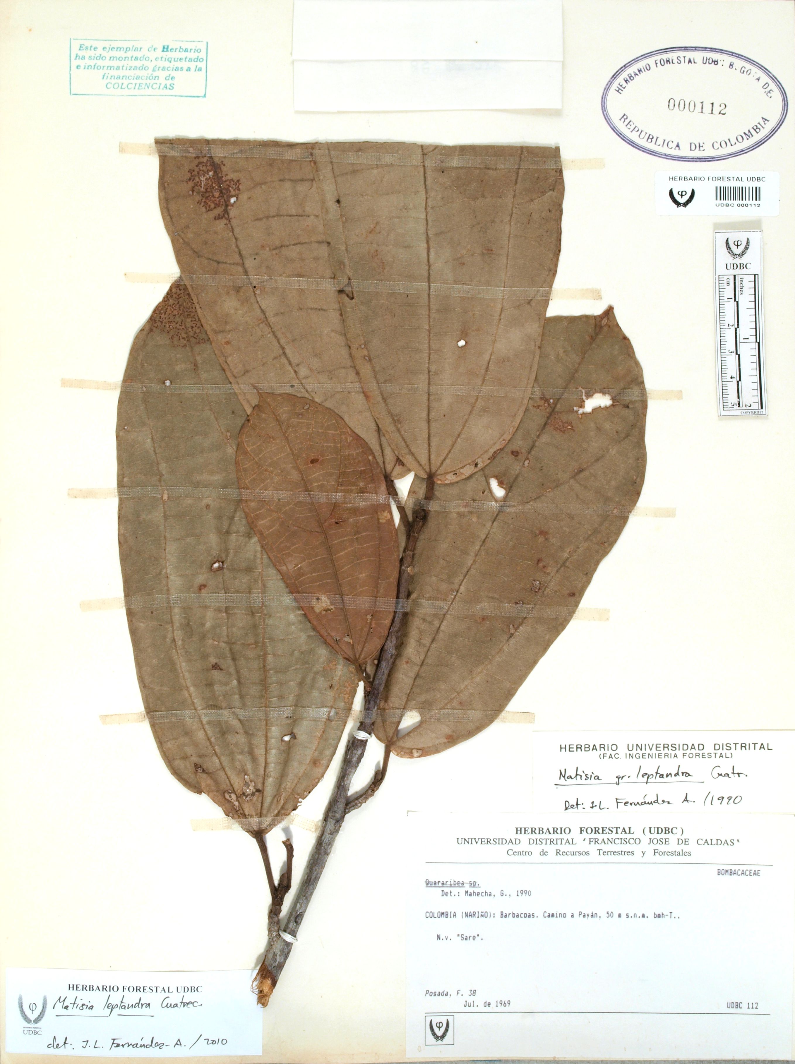 | dc.description | Fotografía del ejemplar Posada, F. 38, determinado como Matisia leptandra en el año 2010 | |
