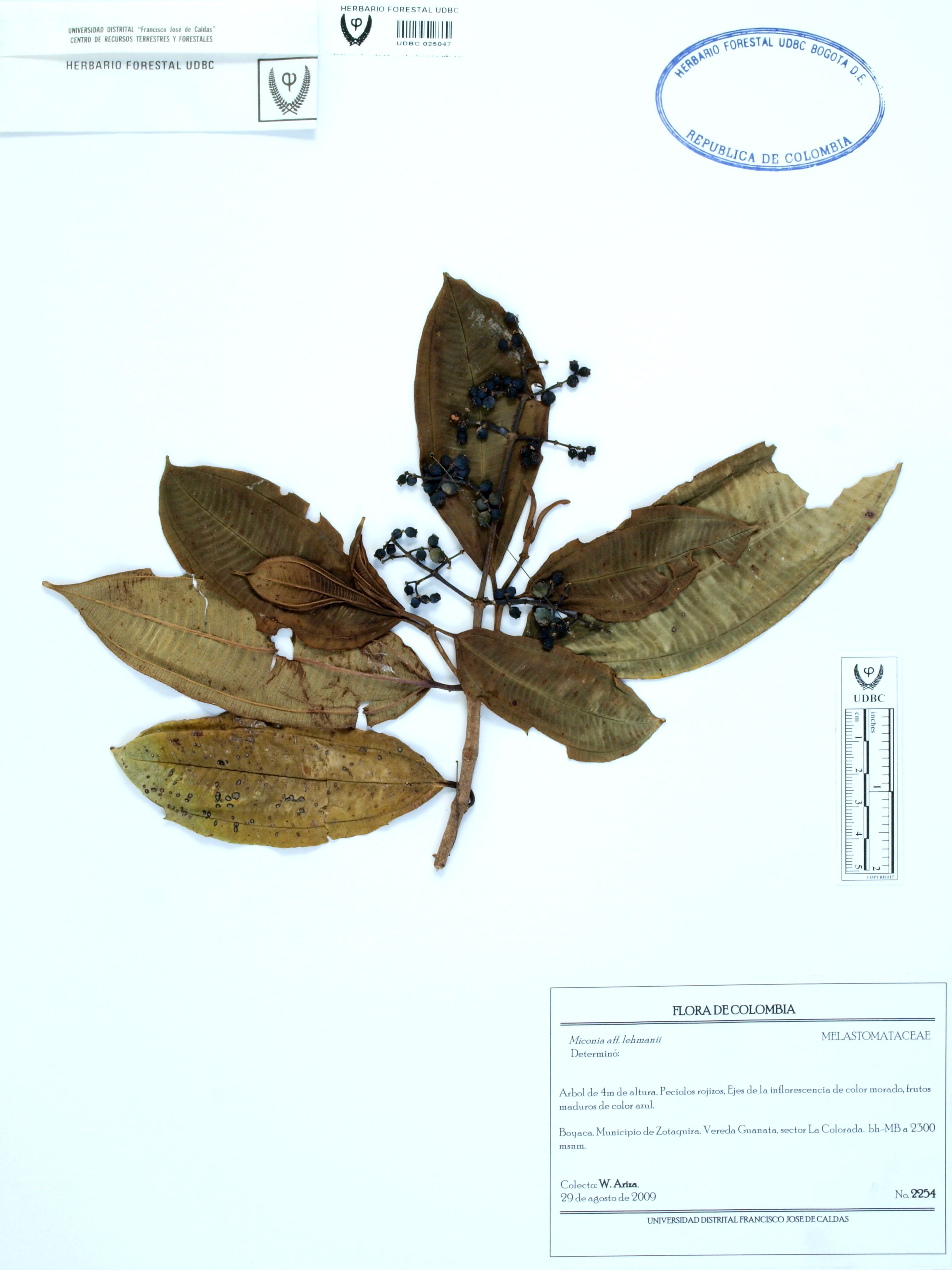 Fotografía del ejemplar Ariza, W. 2254, determinado como Miconia lehmannii