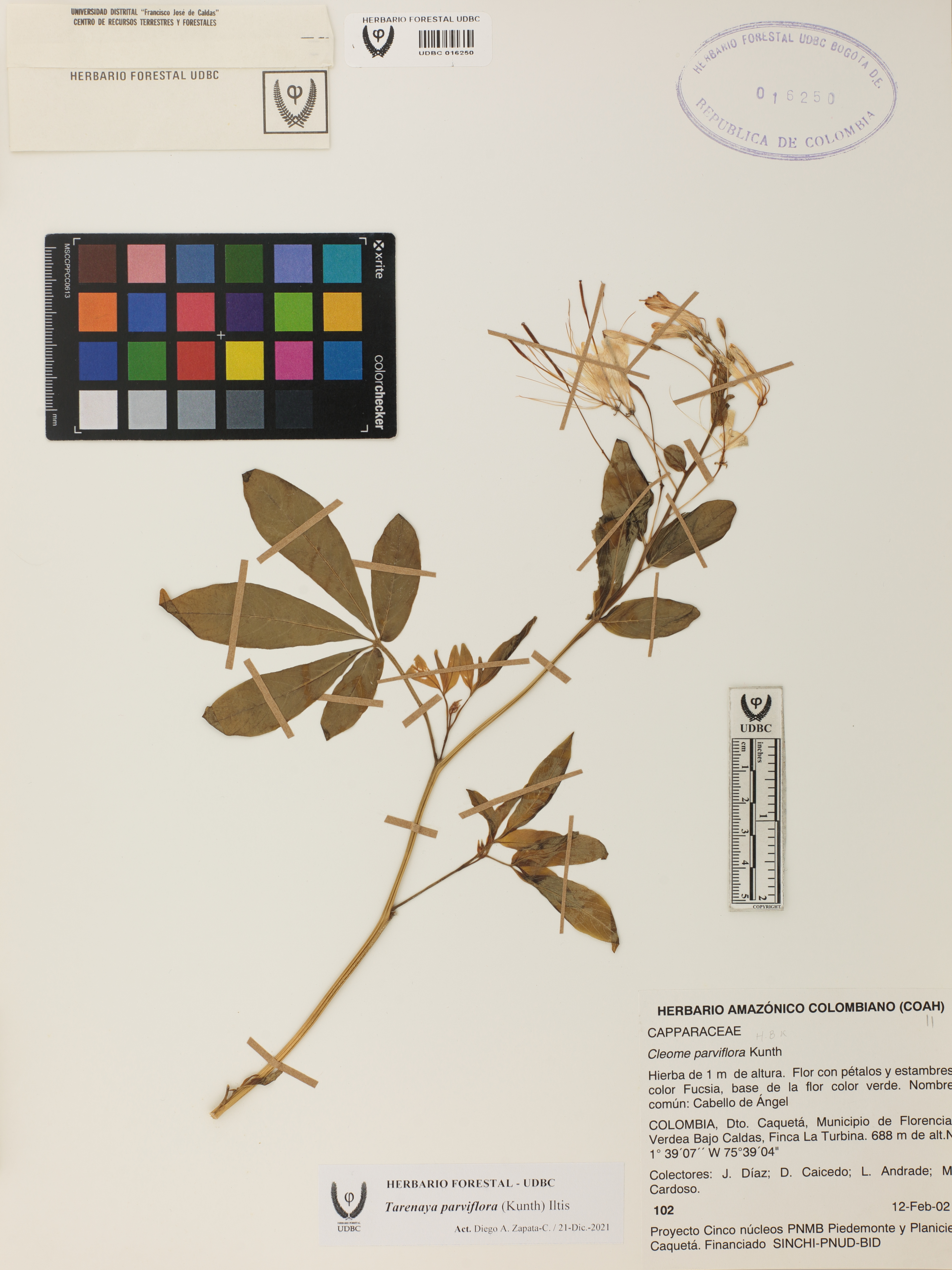 Fotografía del ejemplar Díaz, J. 102, determinado como Tarenaya parviflora en el año 2020