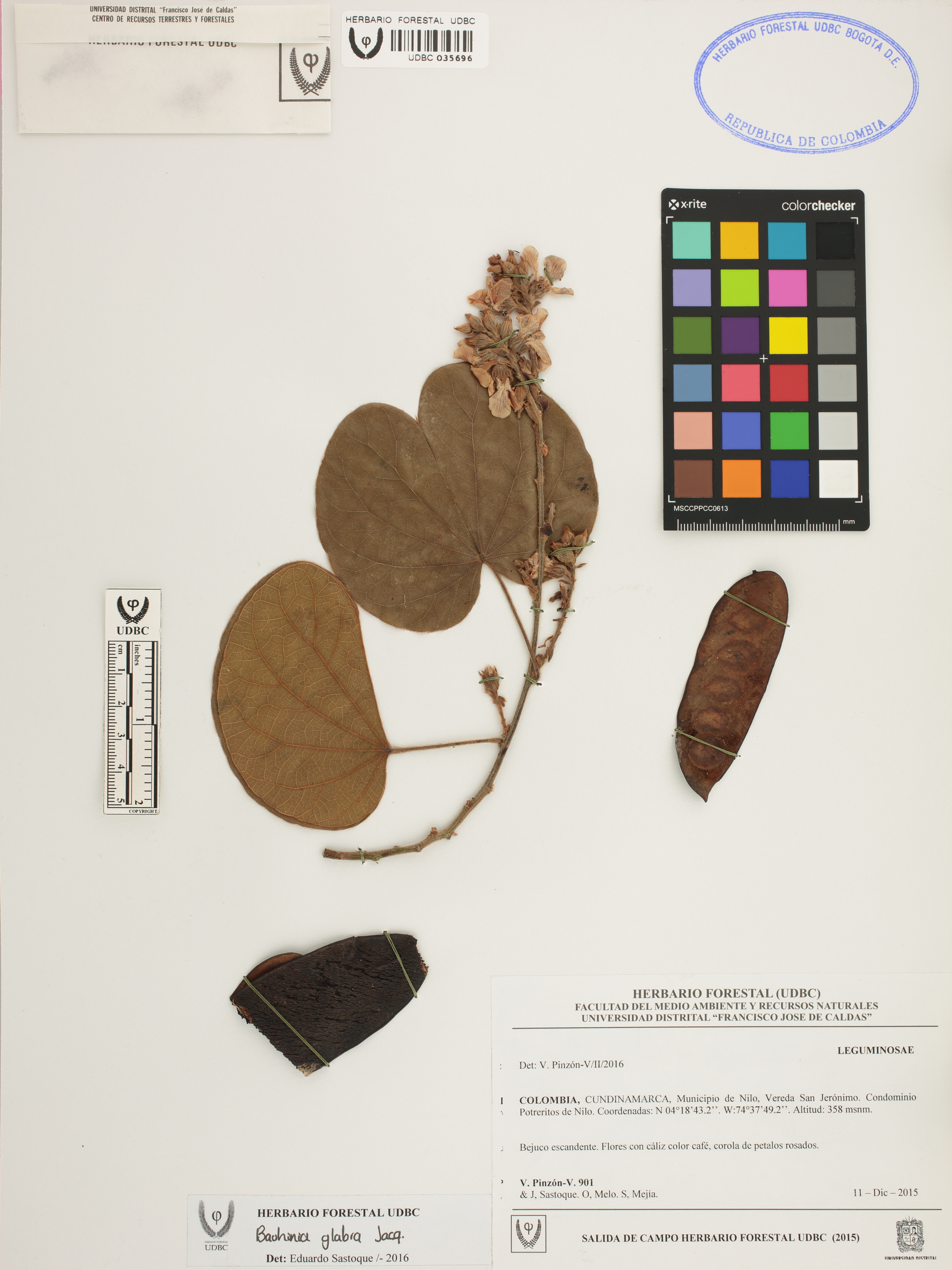 Fotografía del ejemplar Pinzón-V., V. 901, determinado como Schnella glabra en el año 2016