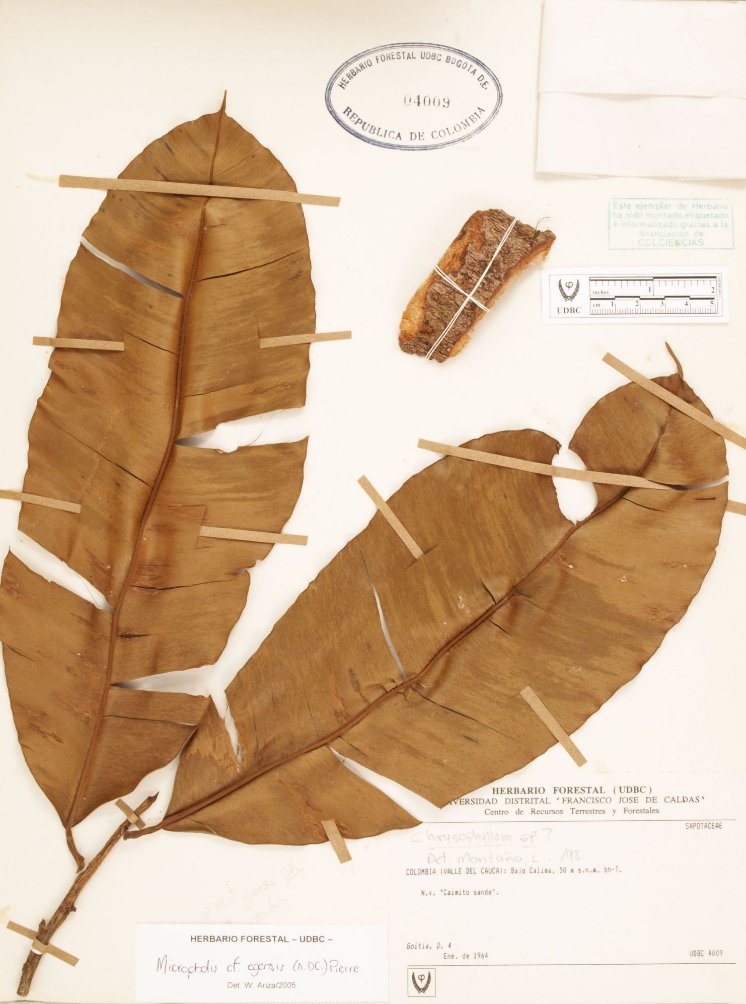 Fotografía del ejemplar Goitia, D. 4, determinado como Micropholis egensis en el año 2005