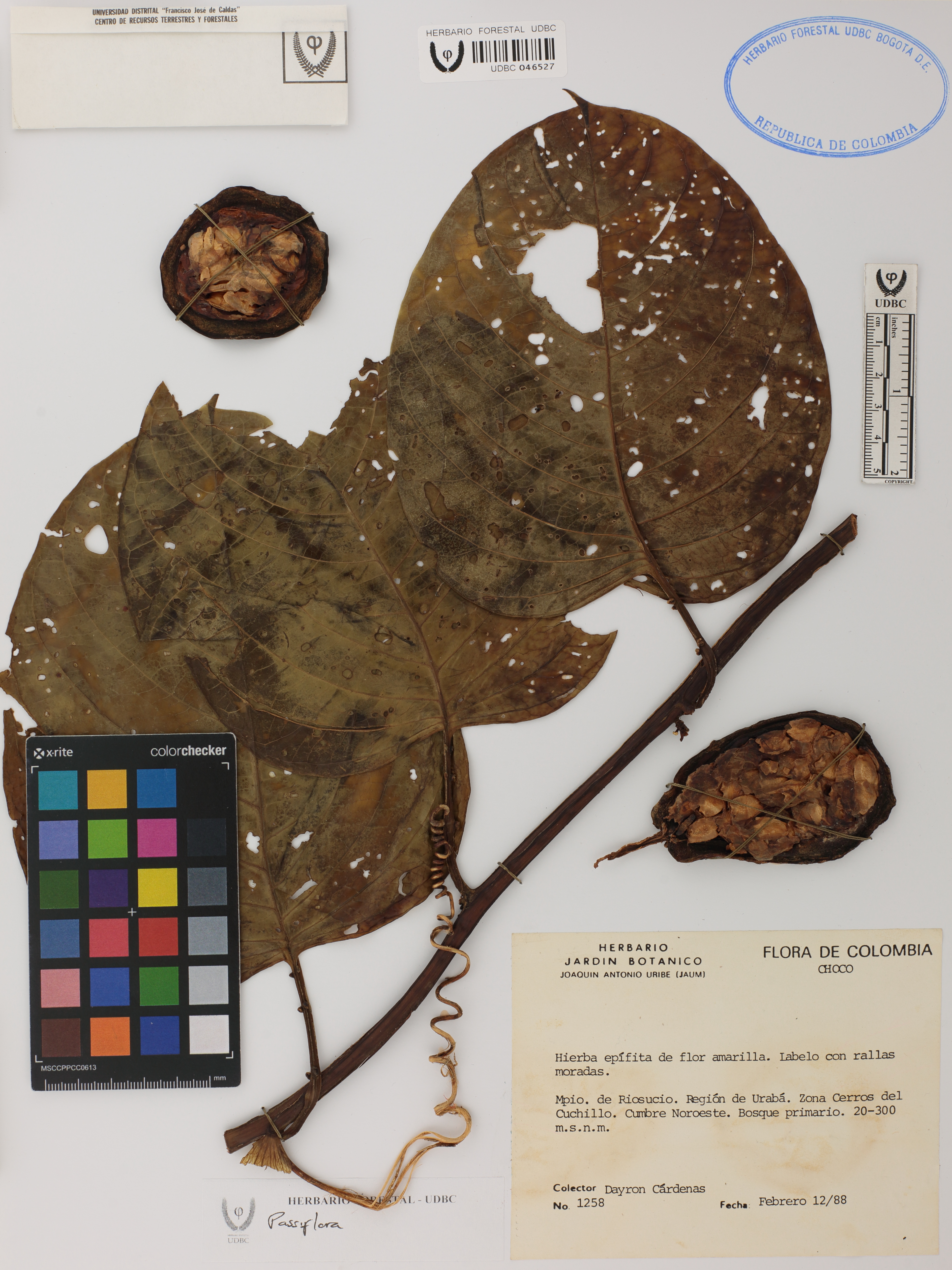 Fotografía del ejemplar Cárdenas, D. 1258, determinado como Passiflora quadrangularis en el año 2022