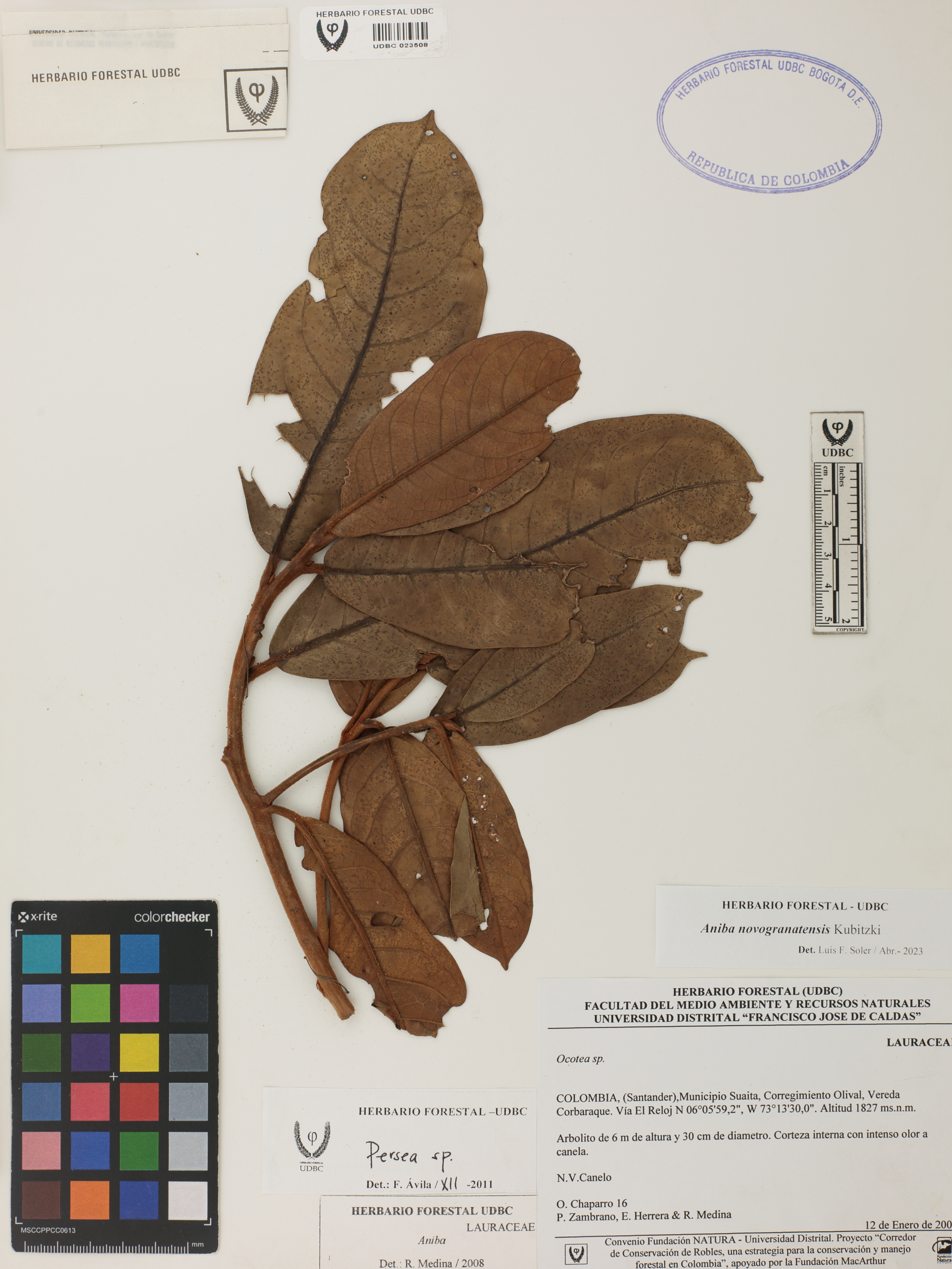 | dc.description | Fotografía del ejemplar Chaparro, O. 16, determinado como Aniba novogranatensis en el año 2023 | |