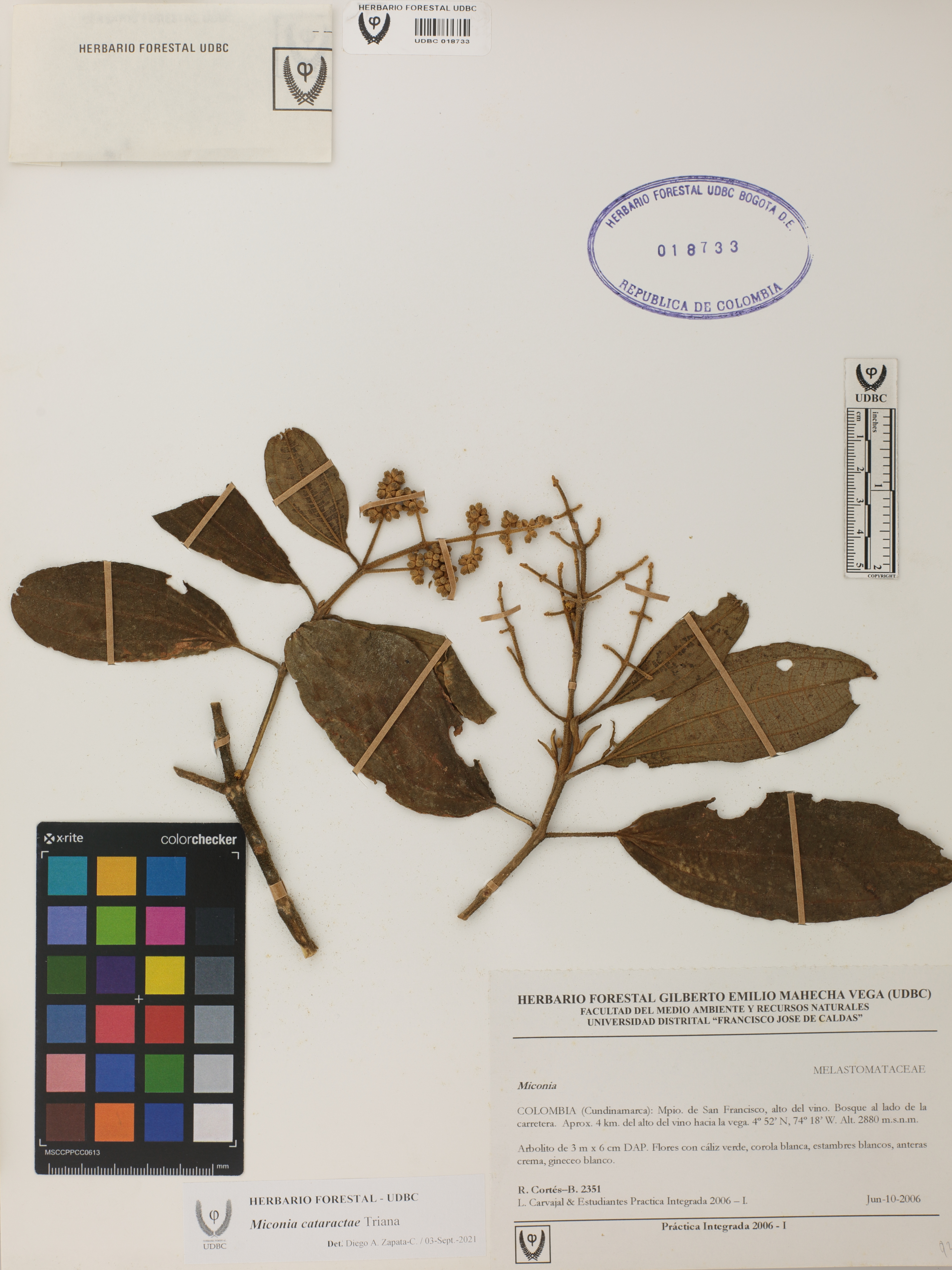 Fotografía del ejemplar Cortés-B., R. 2351, determinado como Miconia cataractae en el año 2021