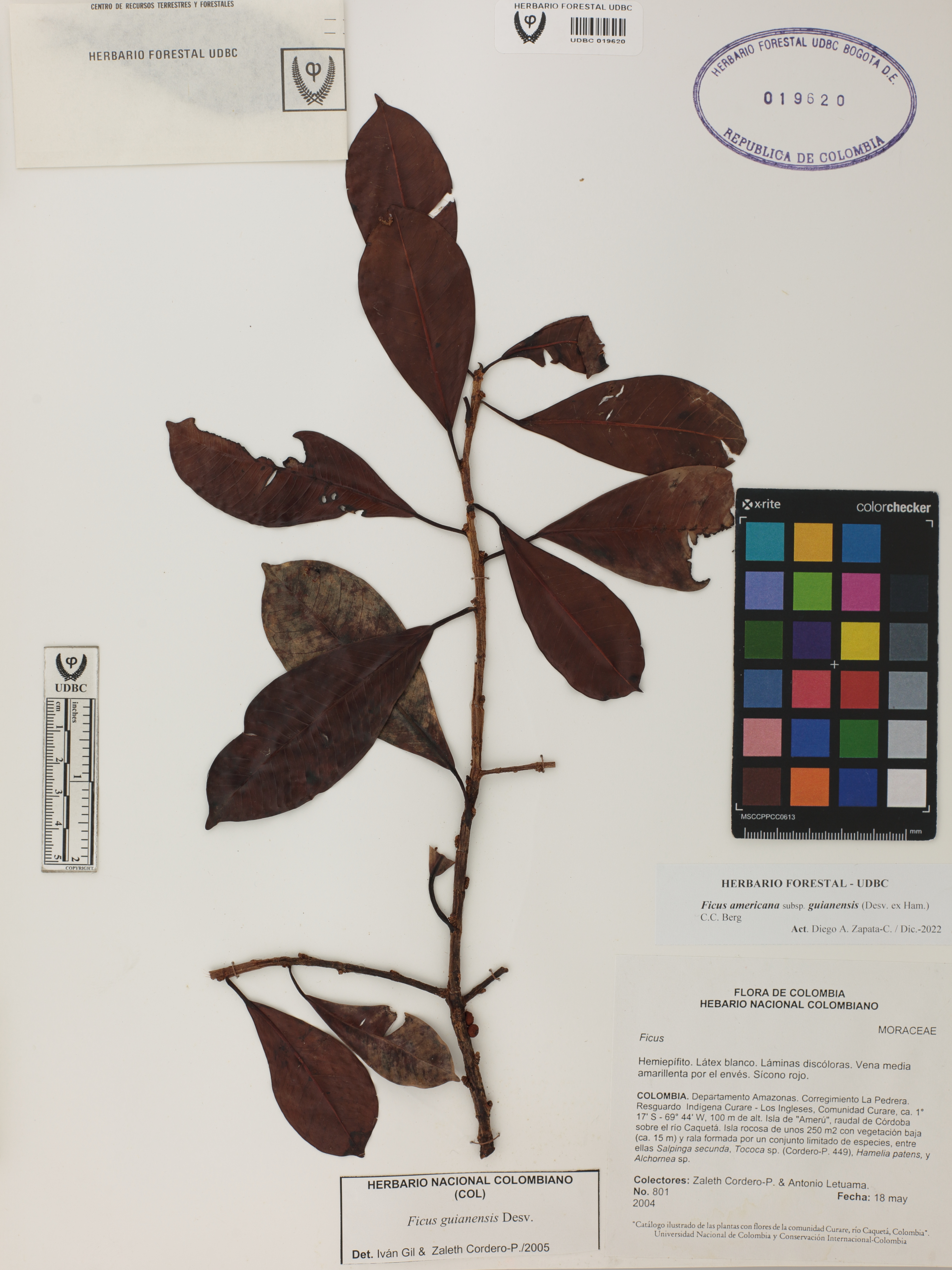 Fotografía del ejemplar Cordero, Z. 801, determinado como Ficus americana subsp. guianensis en el año 2005