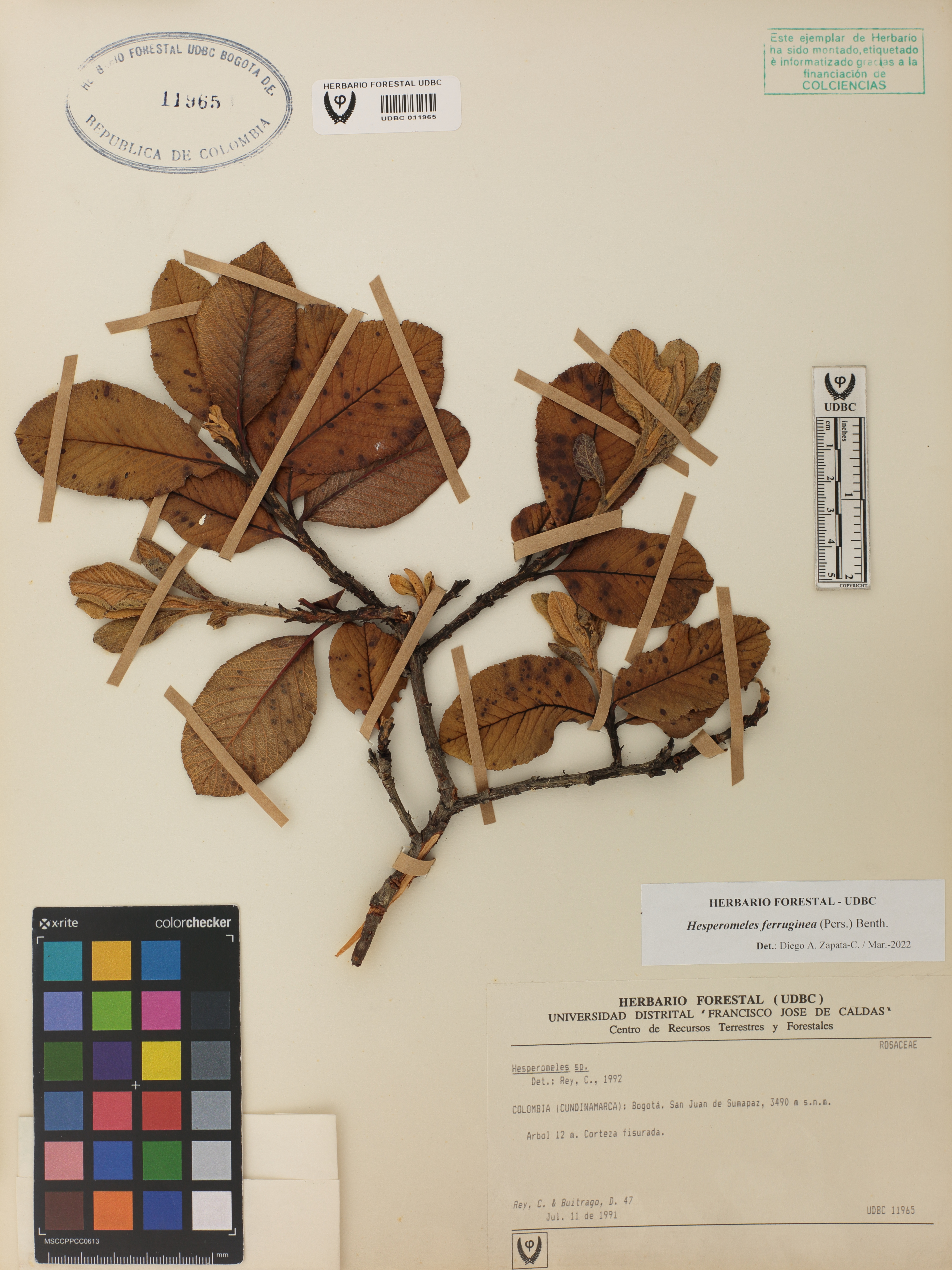 Fotografía del ejemplar Rey, C. 47, determinado como Hesperomeles ferruginea en el año 2022