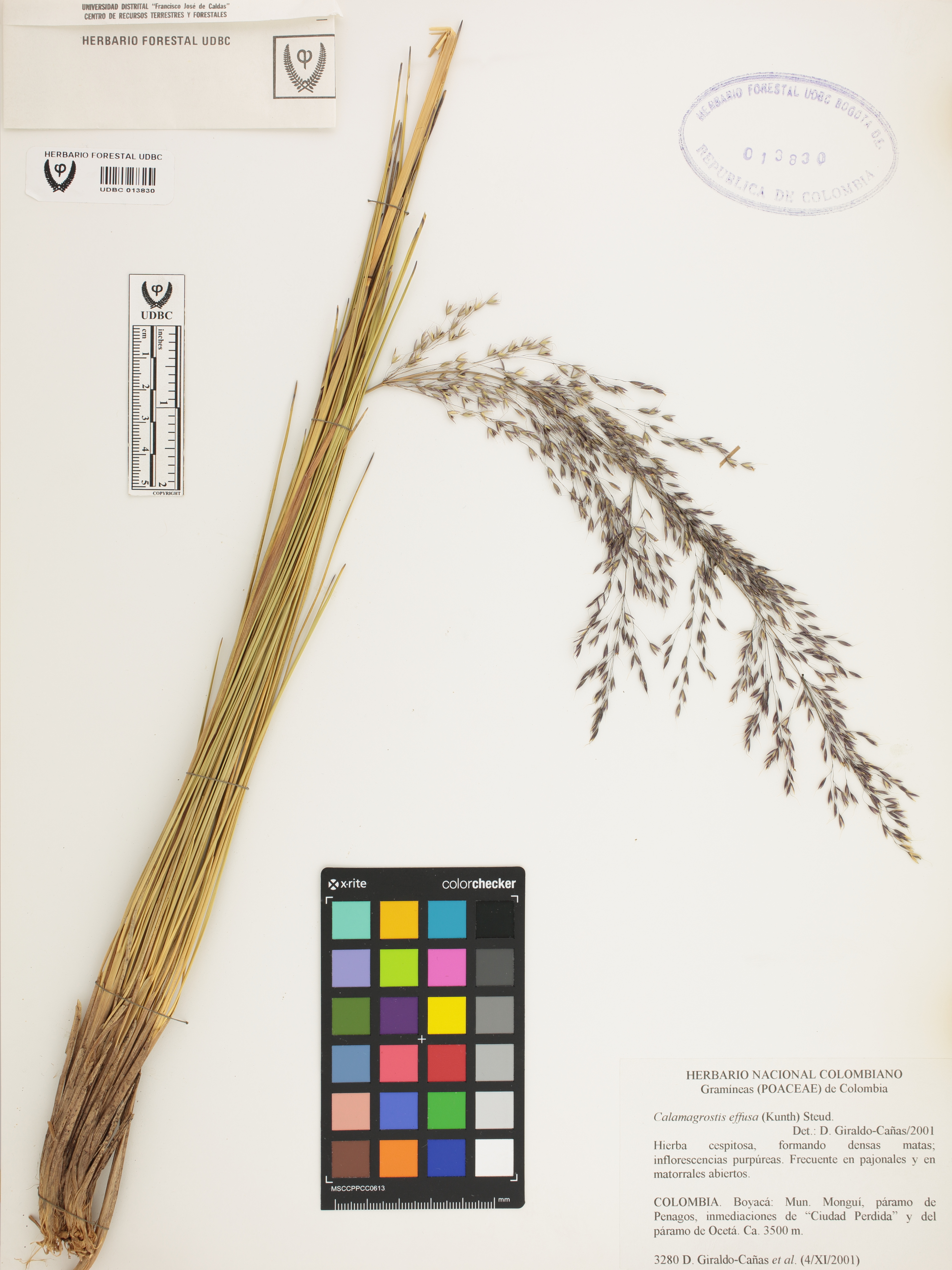 Fotografía del ejemplar Giraldo-Cañas, D. 3280, determinado como Calamagrostis effusa en el año 2001