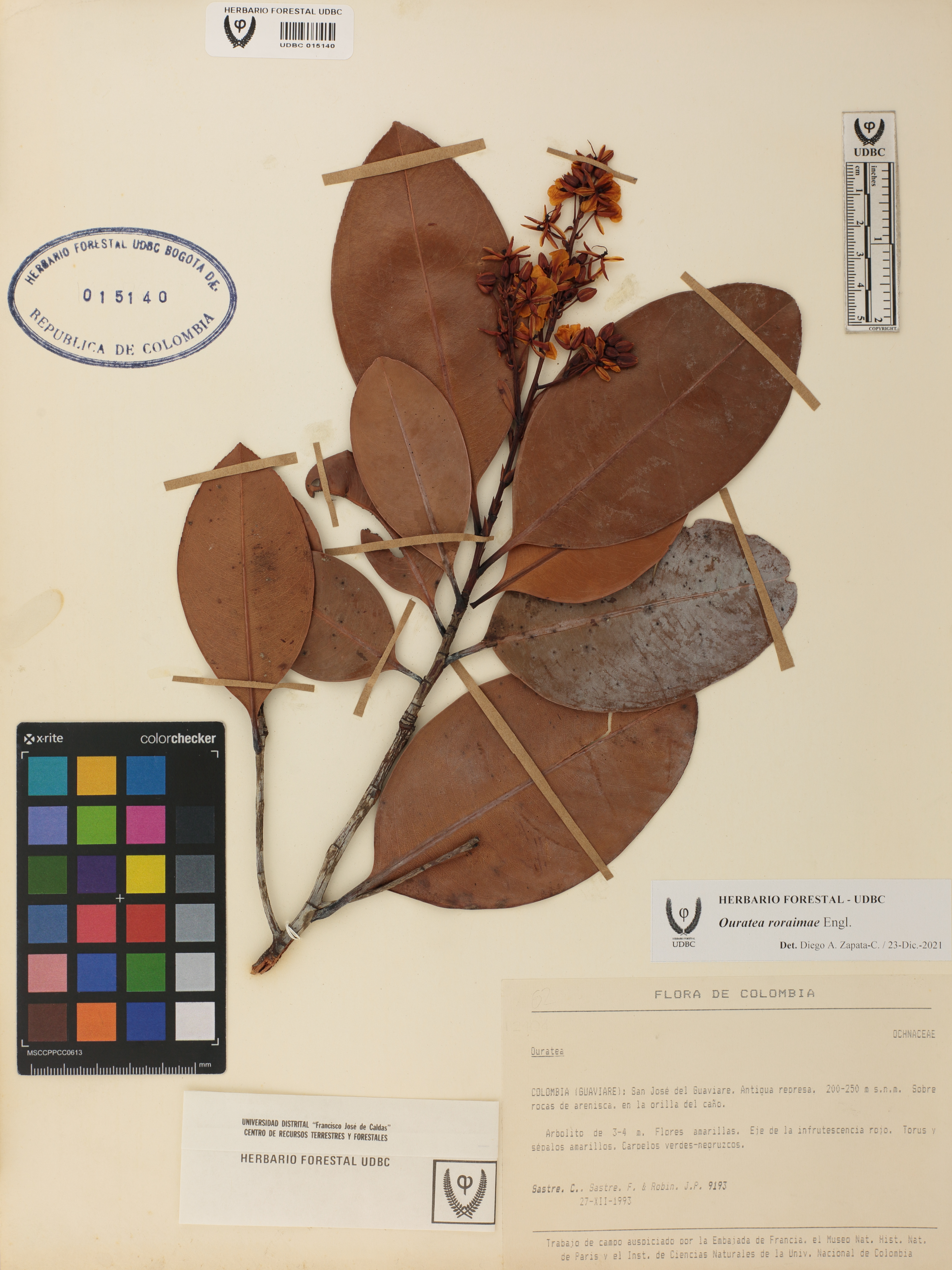 Fotografía del ejemplar Sastre, C. 9193, determinado como Ouratea roraimae en el año 2021