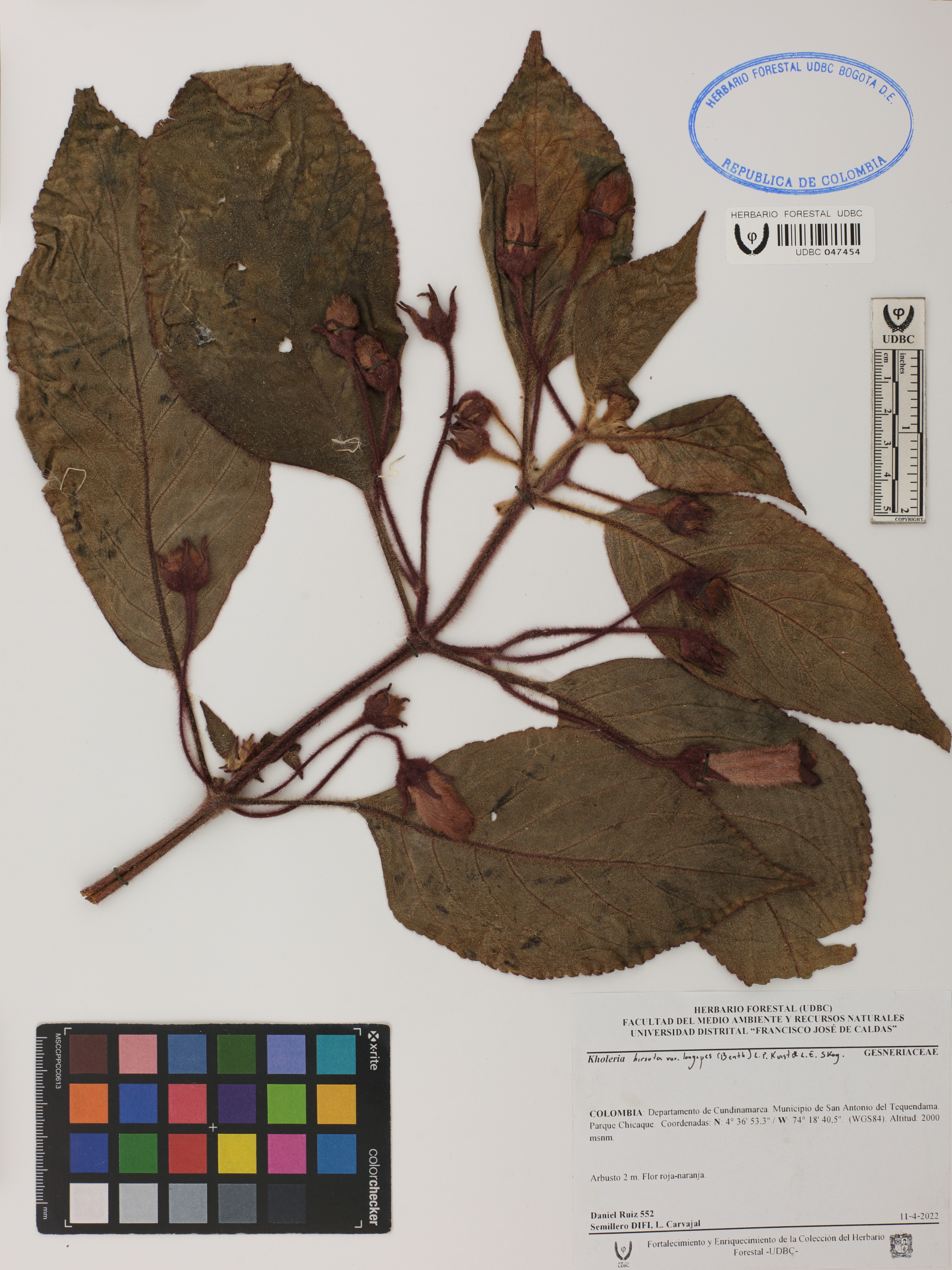 | dc.description | Fotografía del ejemplar Ruiz, Daniel 552, determinado como Kohleria hirsuta var. longipes en el año 2022 | |