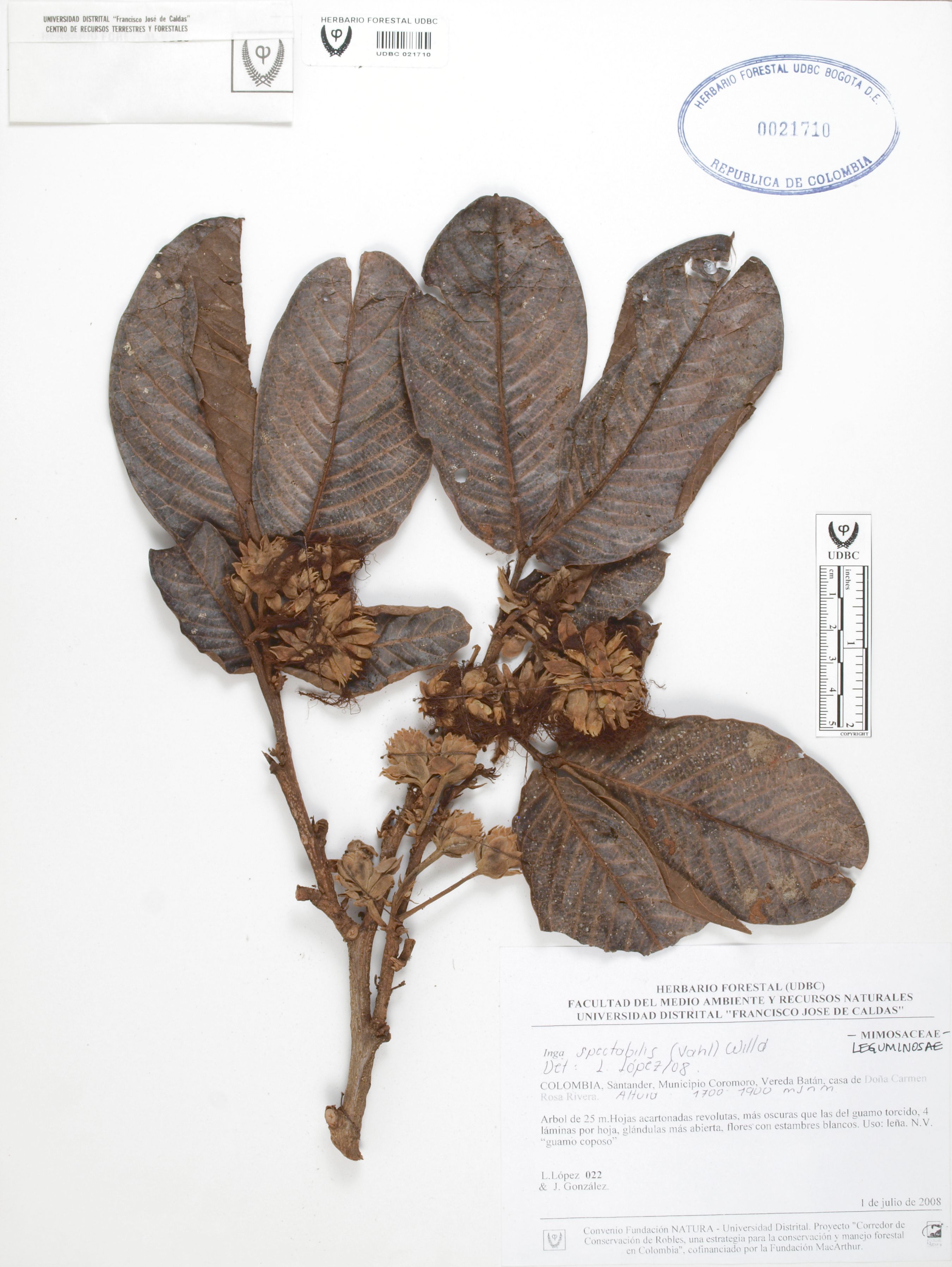 Fotografía del ejemplar López, L. 22, determinado como Inga spectabilis en el año 2008