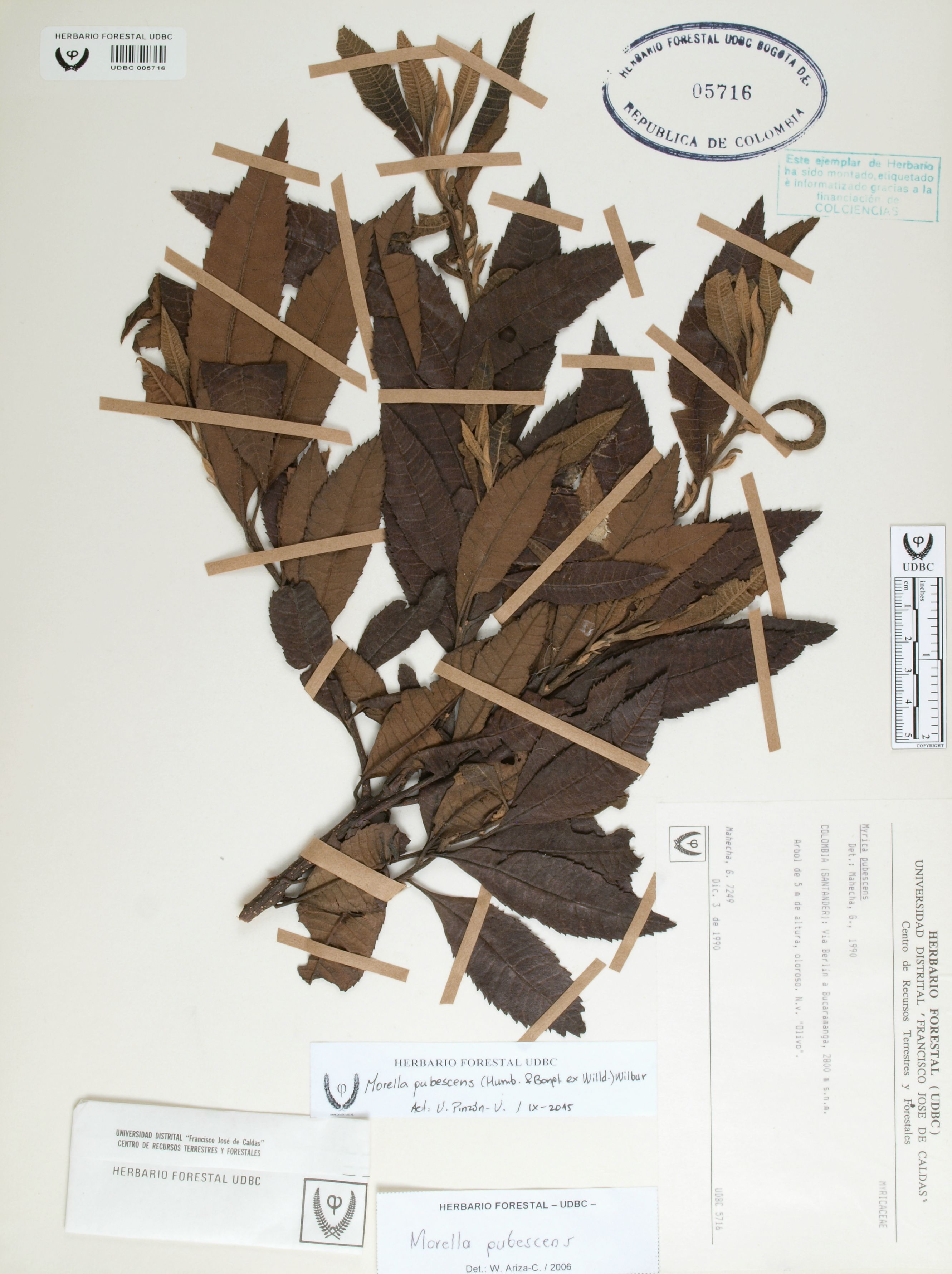 Fotografía del ejemplar Mahecha, G. 7249, determinado como Morella pubescens en el año 2015