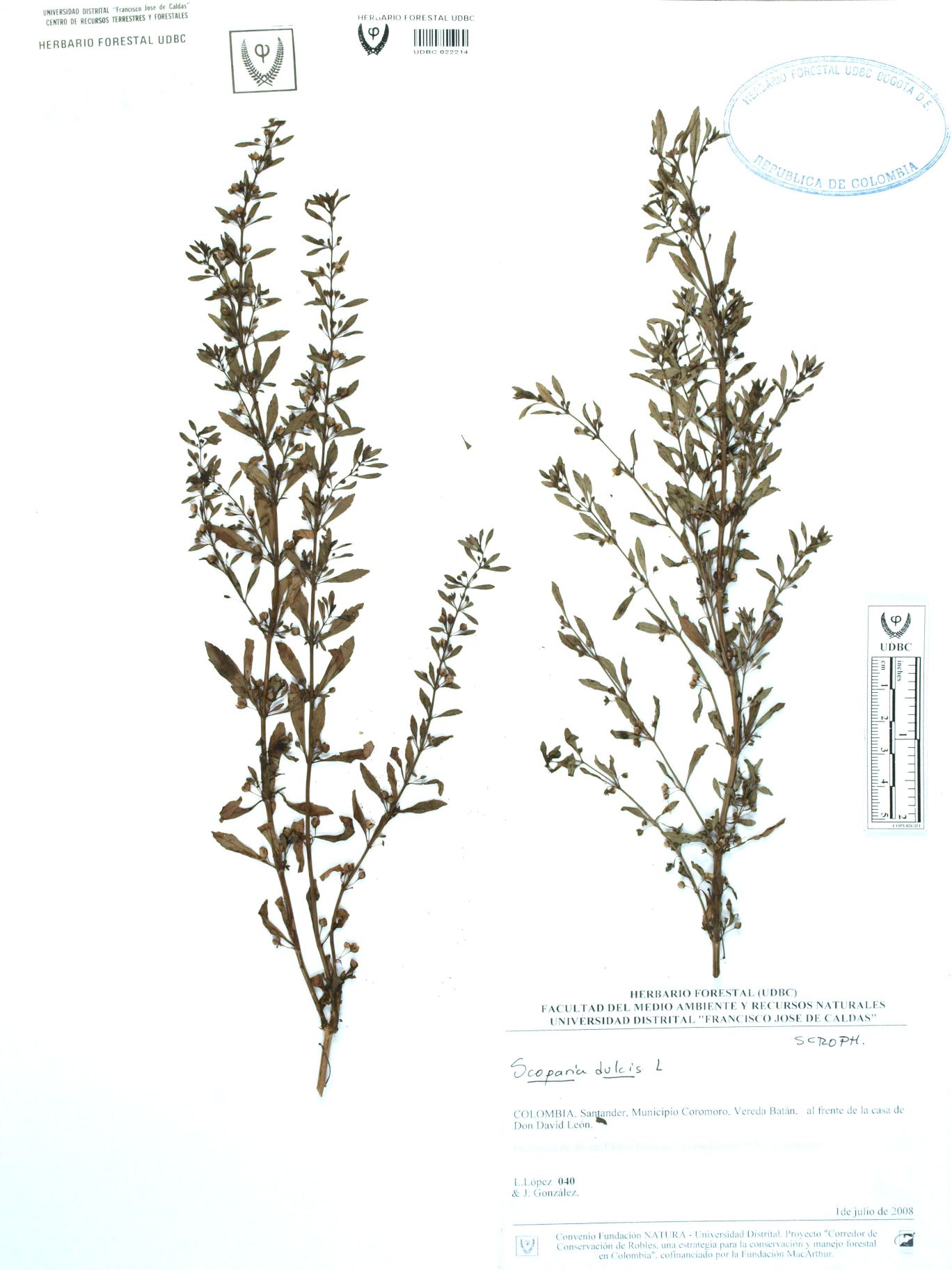 Fotografía del ejemplar López, L. 40, determinado como Scoparia dulcis