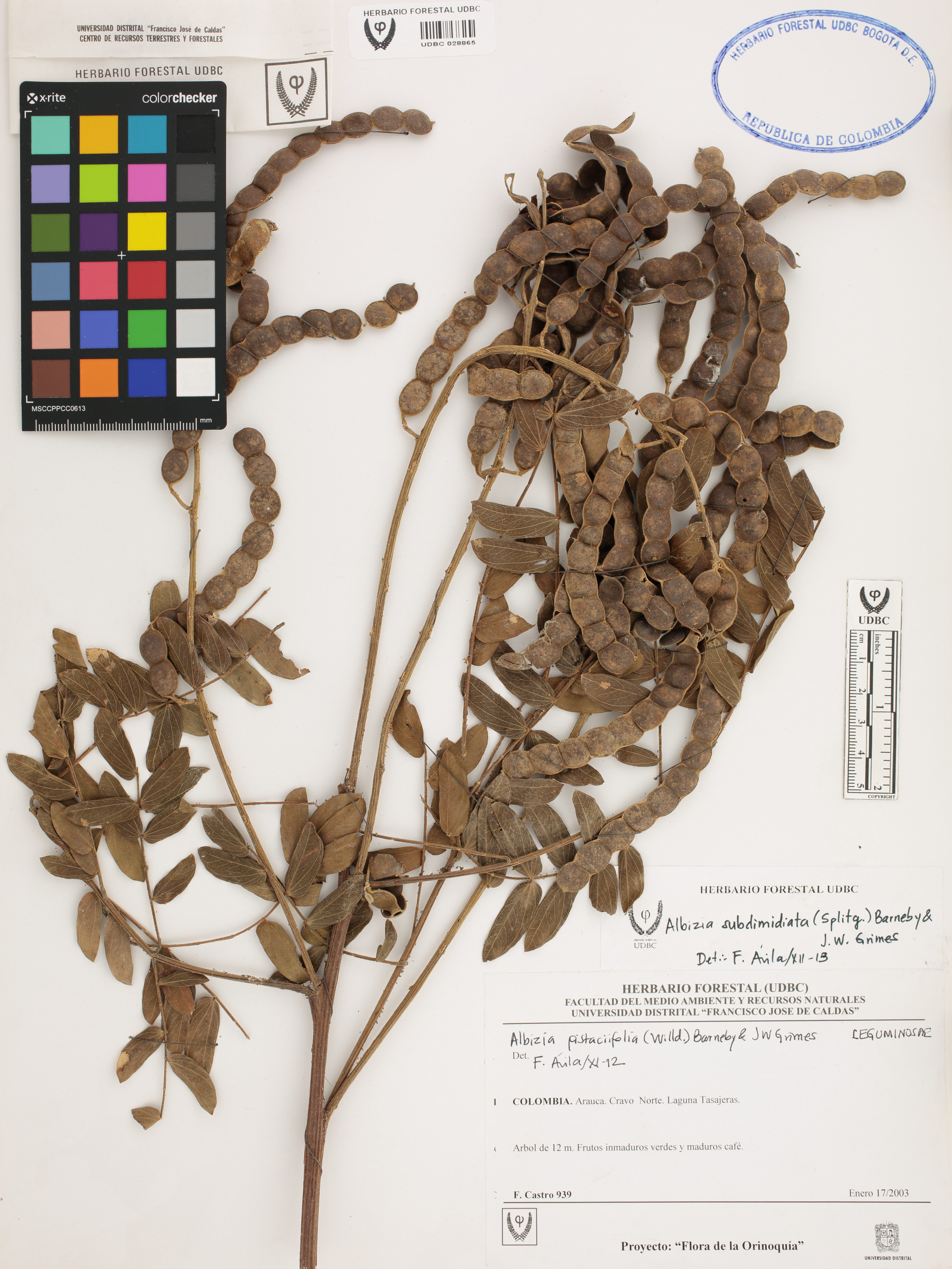 | dc.description | Fotografía del ejemplar Castro, F. 939, determinado como Albizia subdimidiata en el año 2013 | |