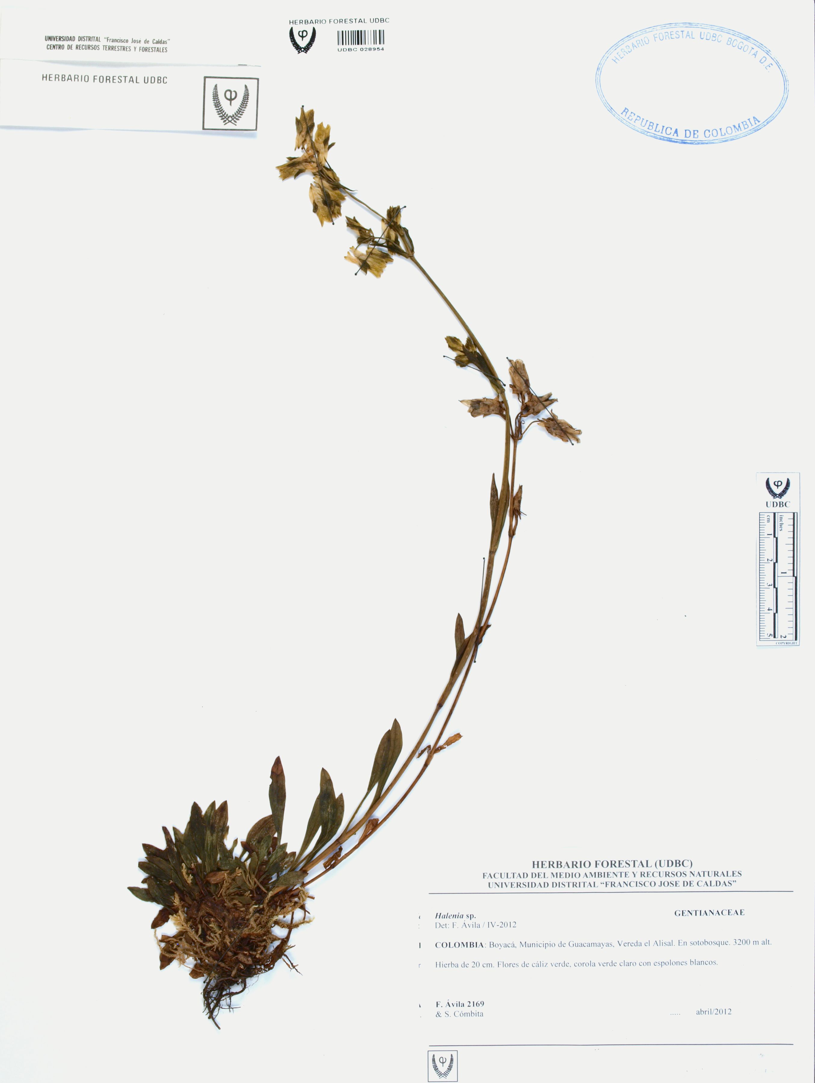 Fotografía del ejemplar Ávila, F. 2169, determinado como Halenia sp. en el año 2012