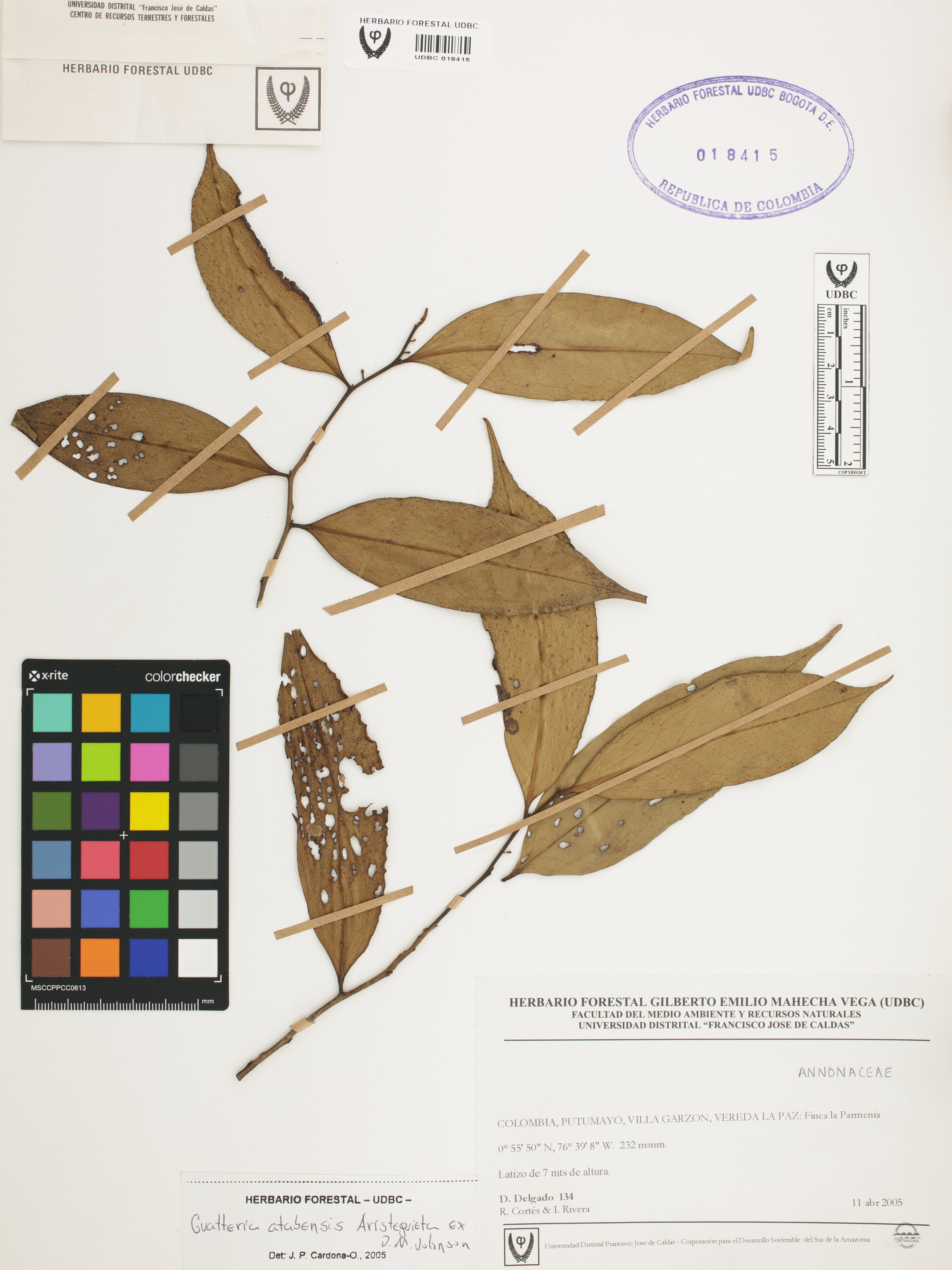 Fotografía del ejemplar Delgado, D. 134, determinado como Guatteria atabapensis en el año 2005