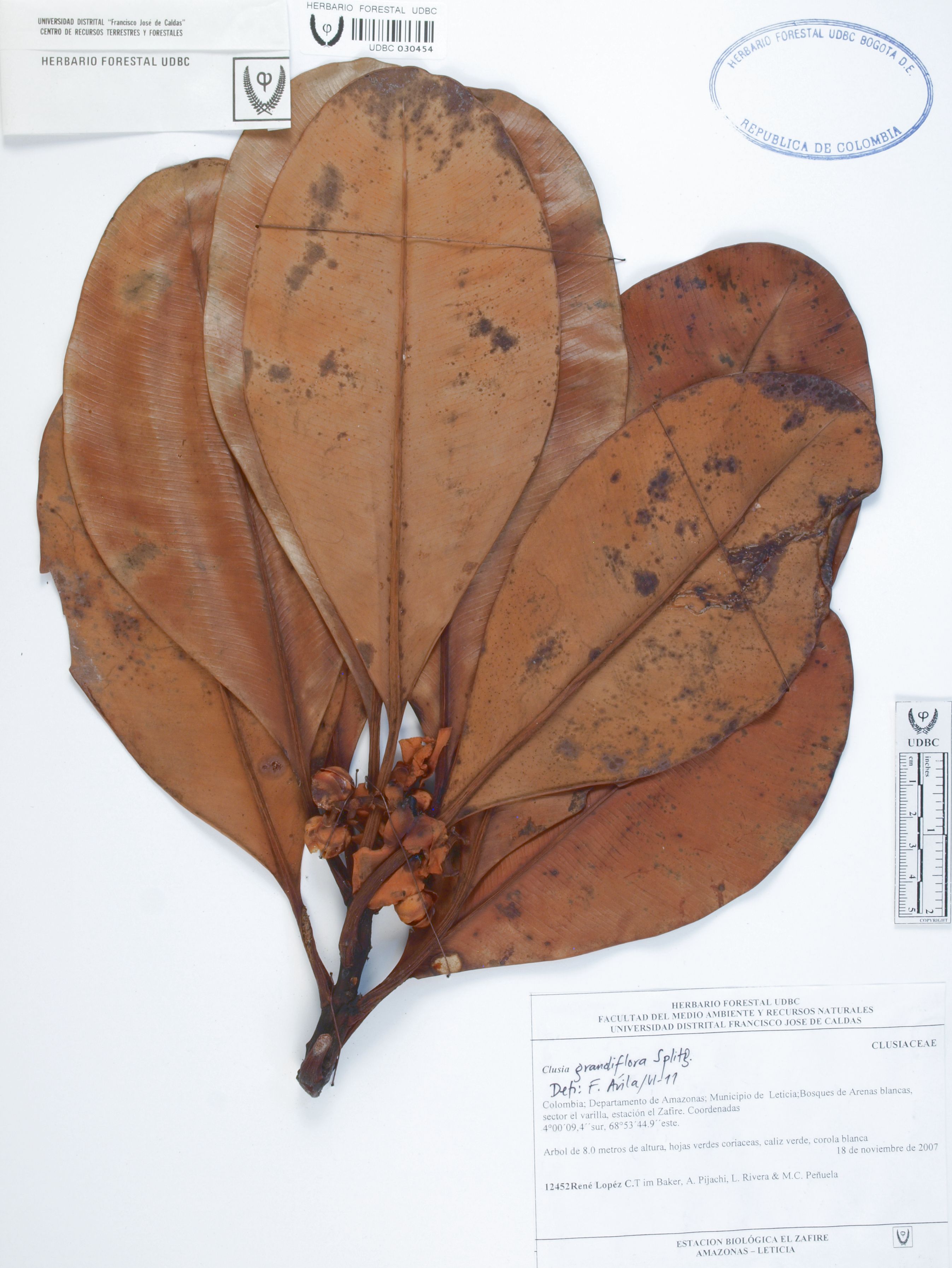 Fotografía del ejemplar López, R. 12452, determinado como Clusia grandiflora en el año 2011