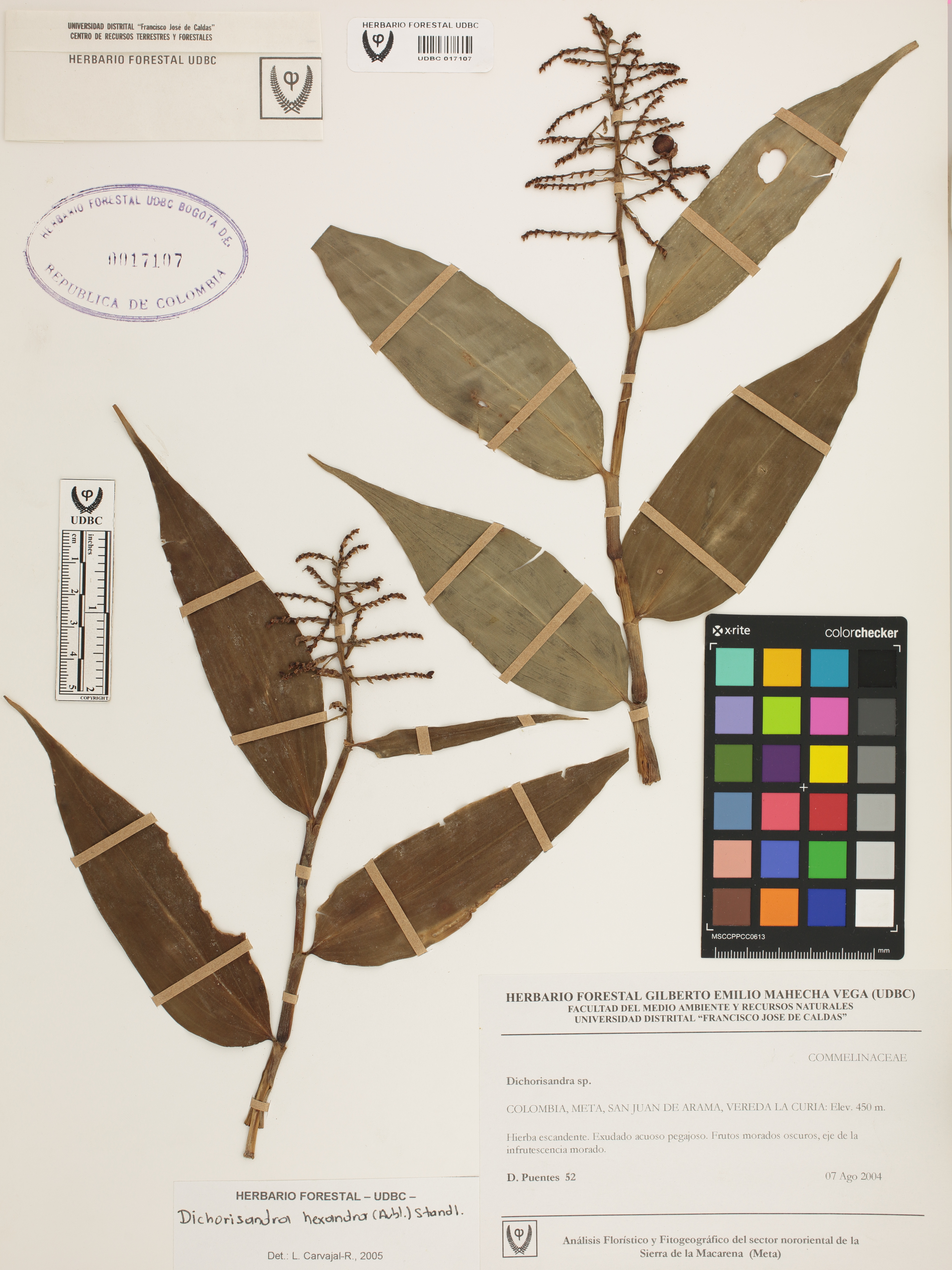 Fotografía del ejemplar Puentes, D. 52, determinado como Dichorisandra hexandra en el año 2005
