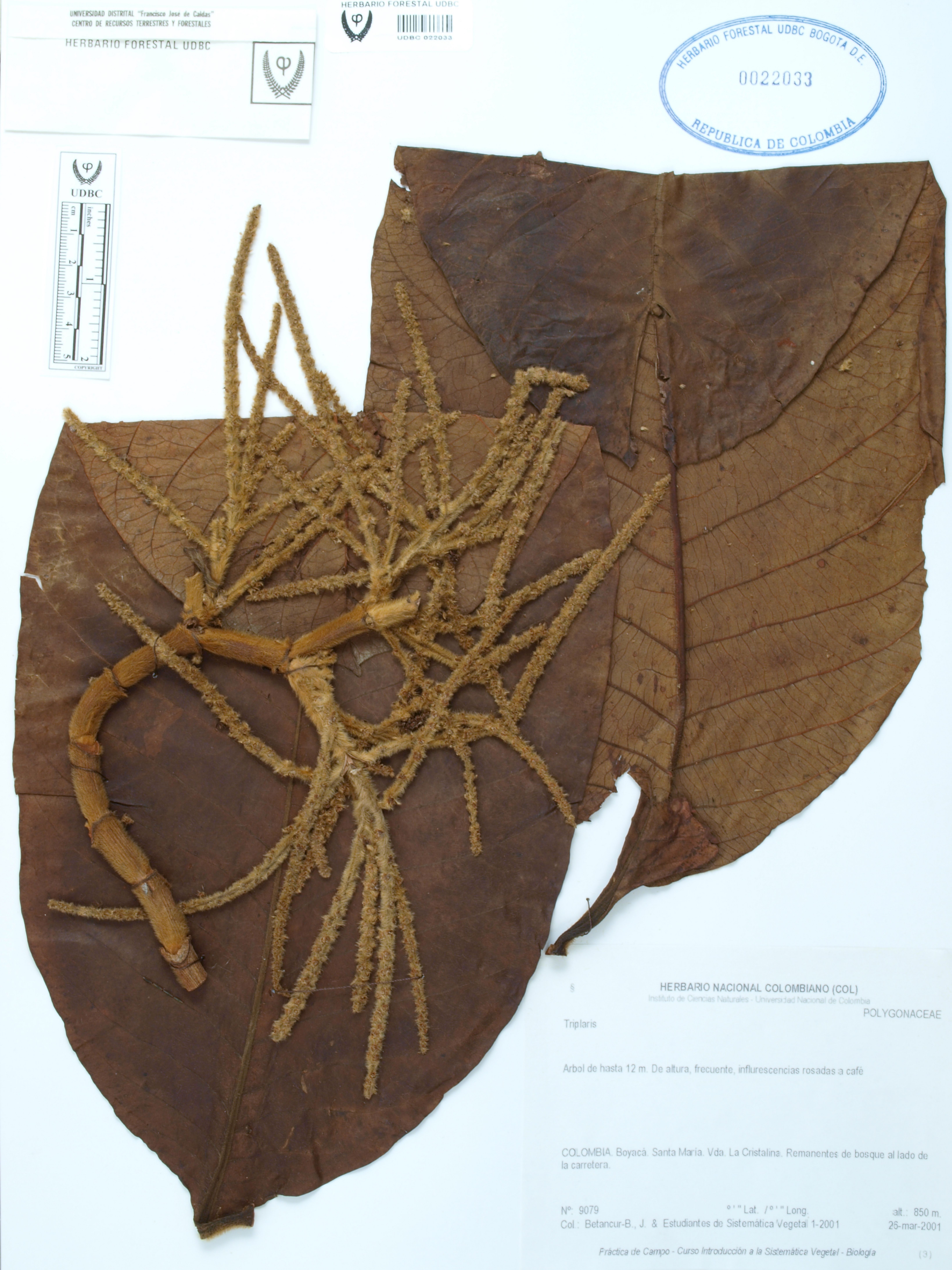 Fotografía del ejemplar Betancur, J. 9079, determinado como Triplaris sp.