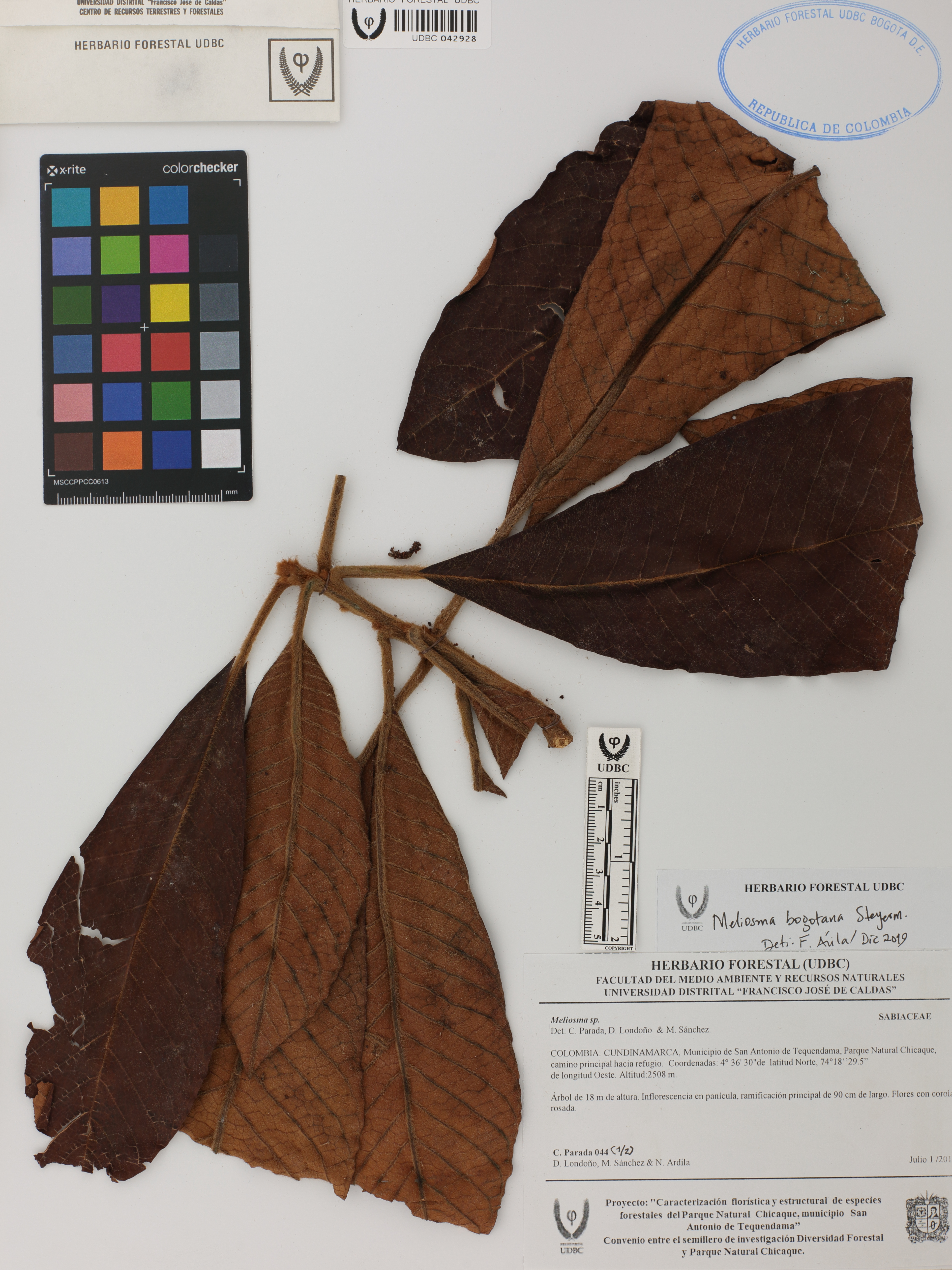 Fotografía del ejemplar Parada, C. 44, determinado como Meliosma bogotana en el año 2019