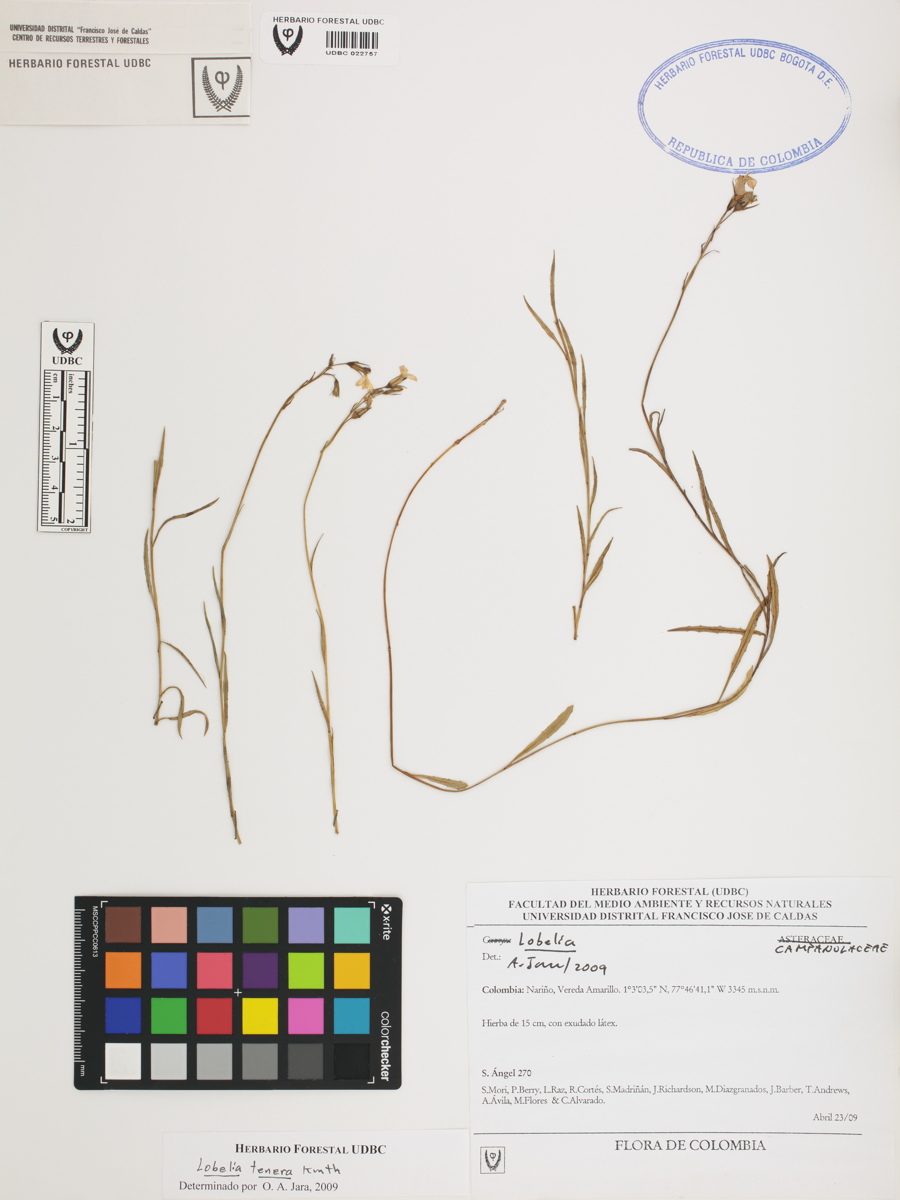 Fotografía del ejemplar Ángel, S. 270, determinado como Lobelia tenera en el año 2009