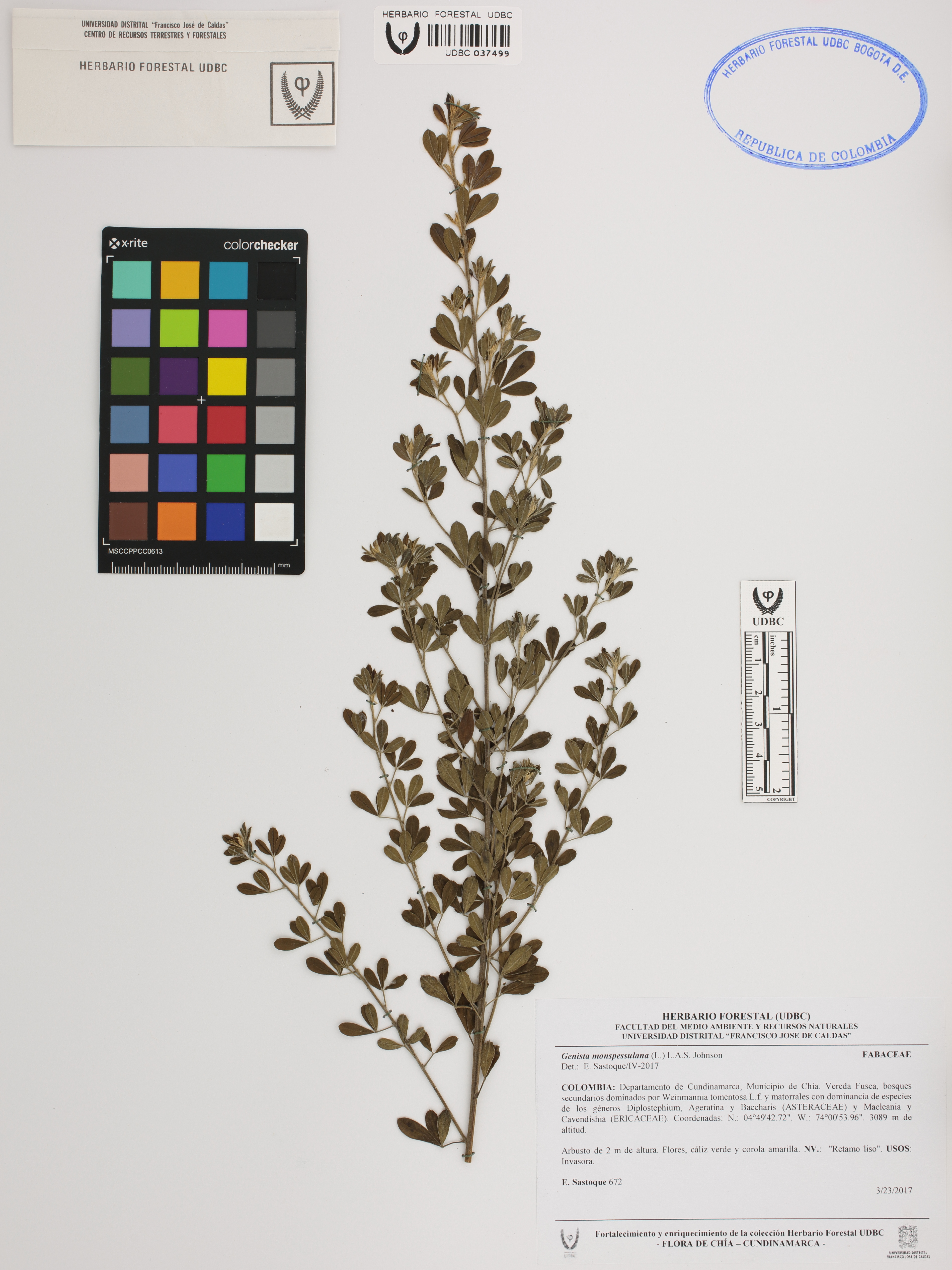 Fotografía del ejemplar Sastoque, E. 672, determinado como Genista monspessulana en el año 2017
