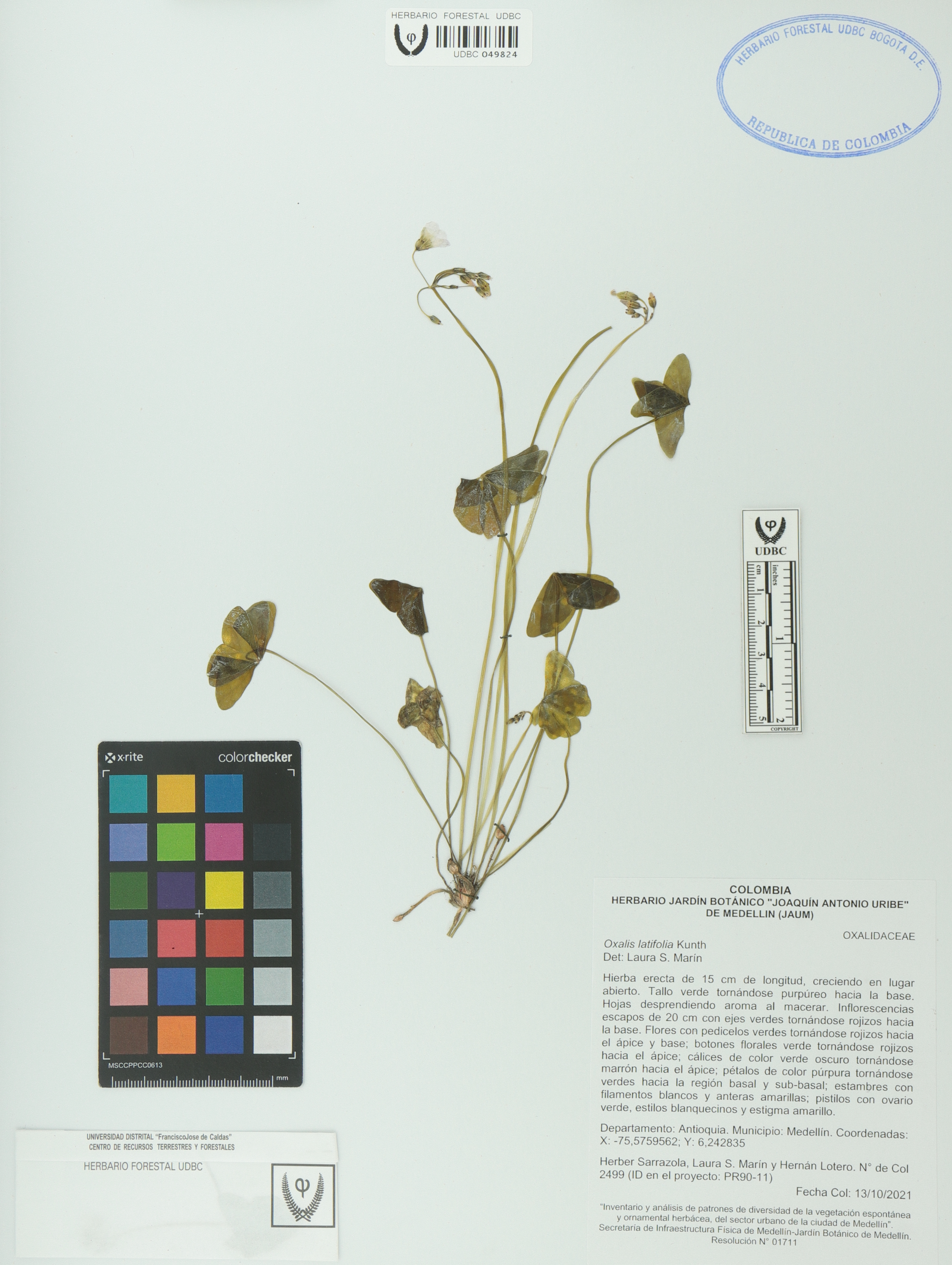 Fotografía del ejemplar Sarrazola, H. 2499, determinado como Oxalis latifolia