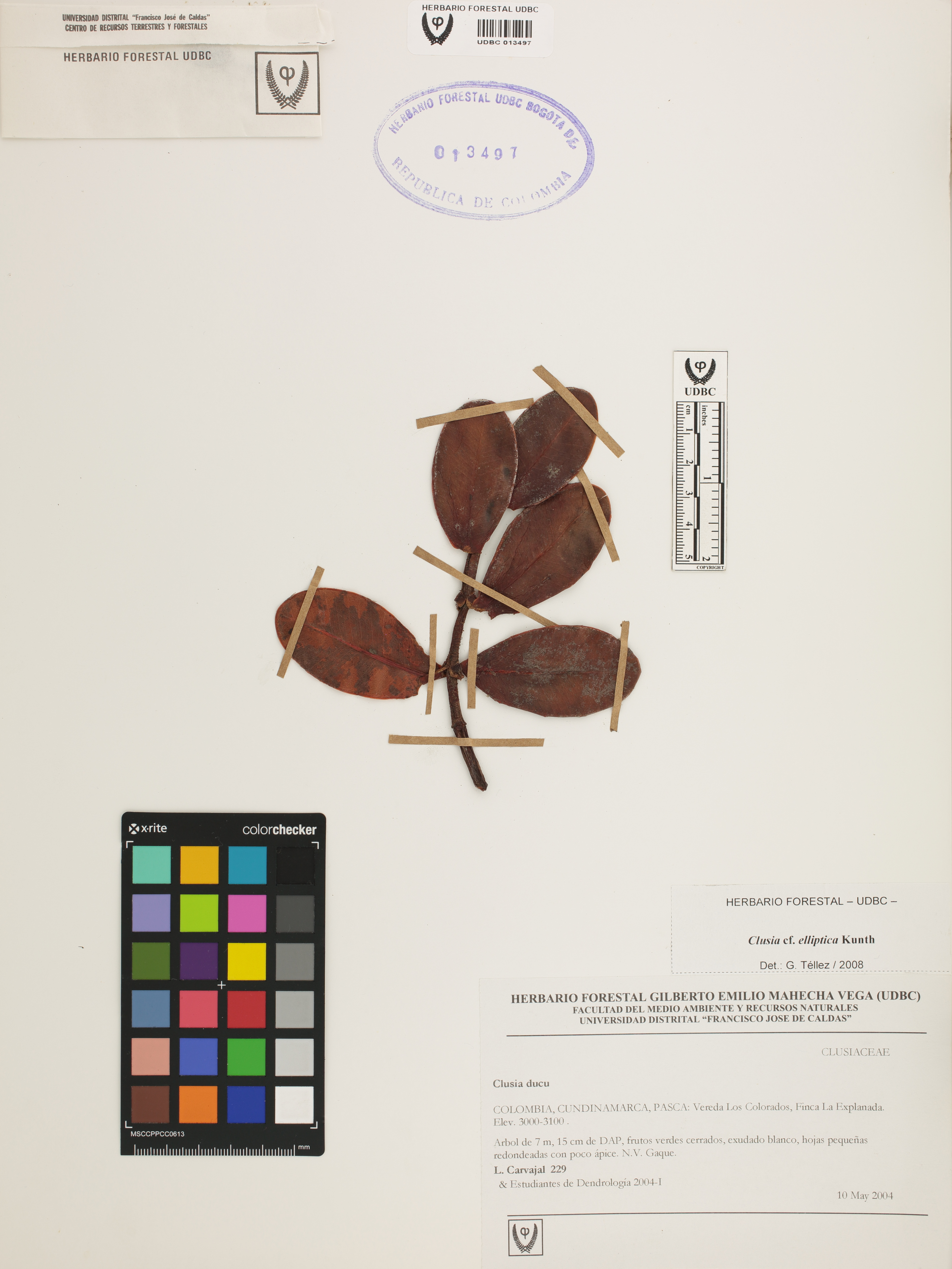 Fotografía del ejemplar Carvajal, L. 229, determinado como Clusia elliptica en el año 2008