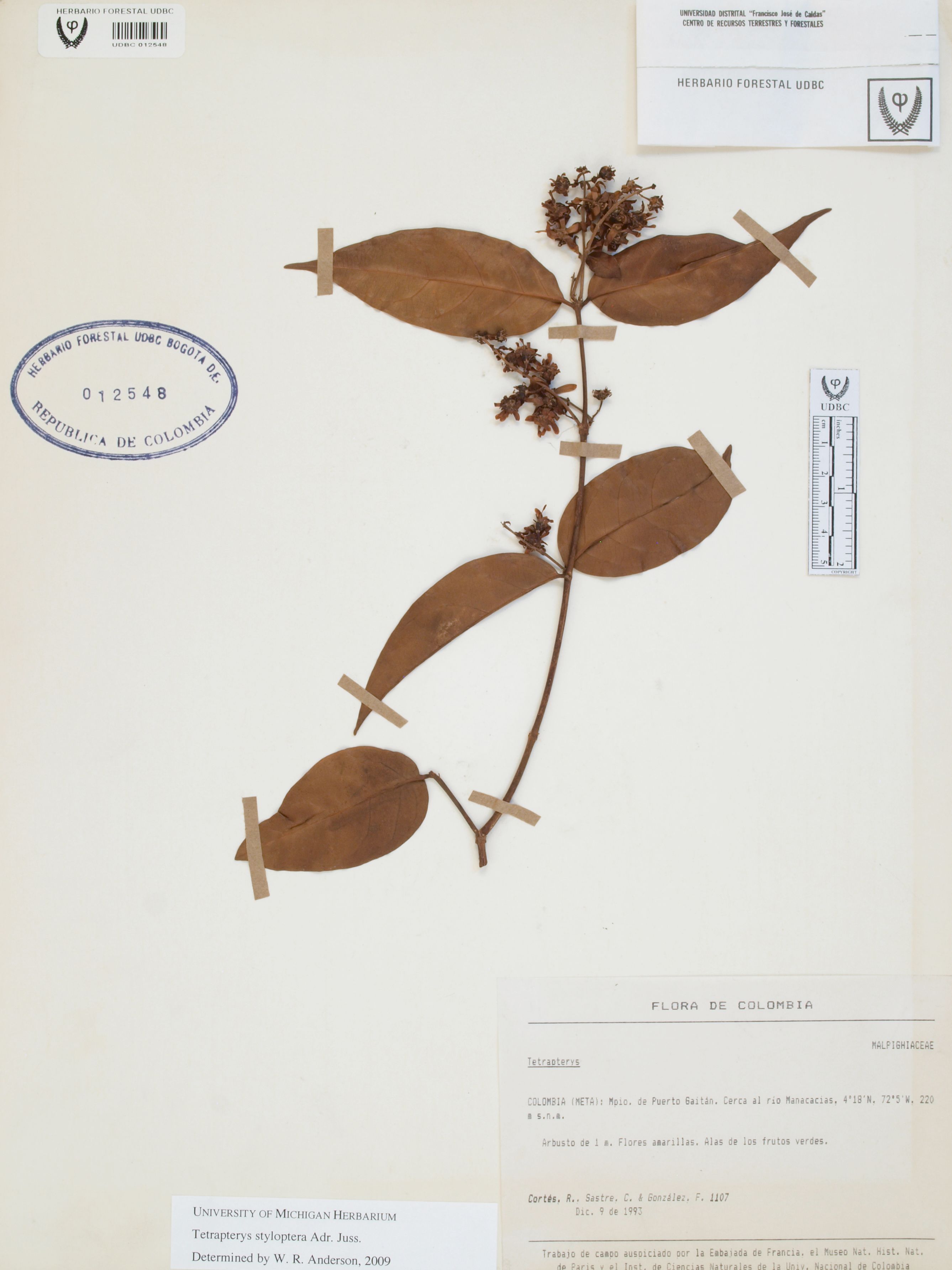 Fotografía del ejemplar Cortés-B., R. 1107, determinado como Tetrapterys styloptera en el año 2009