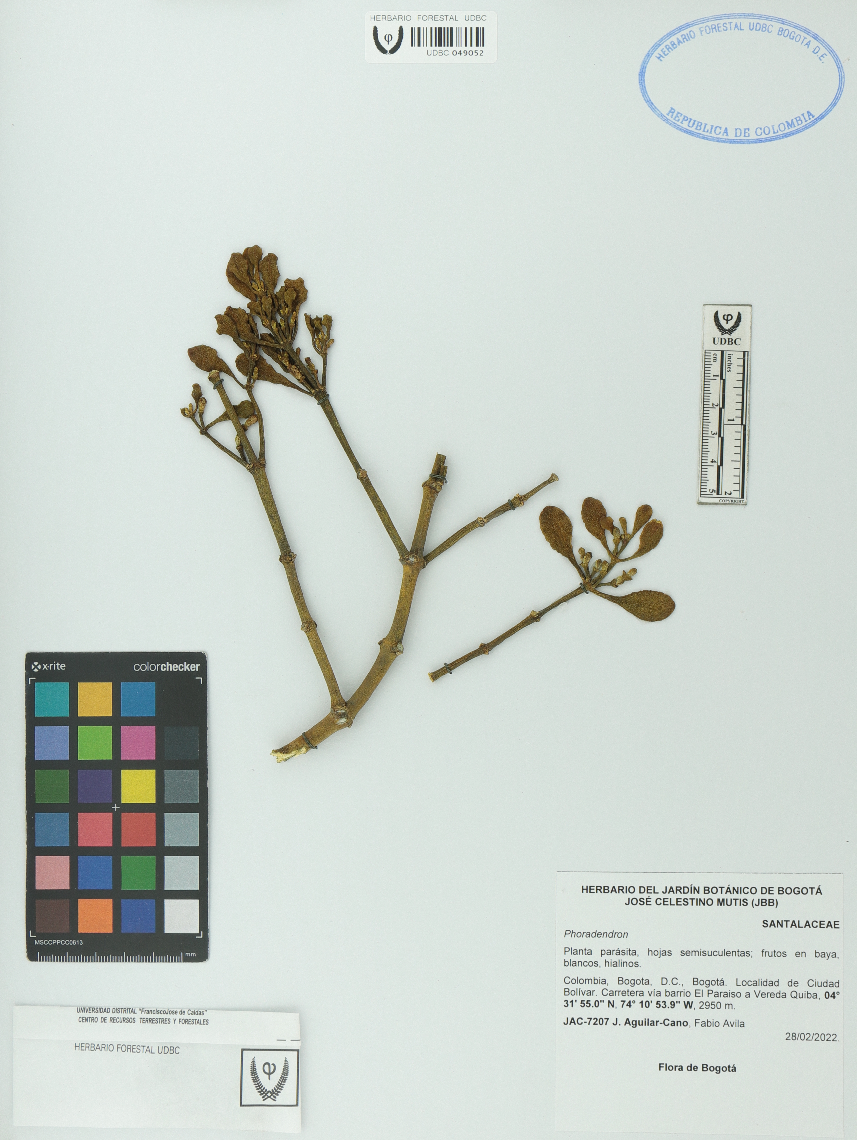 | dc.description | Fotografía del ejemplar Aguilar-Cano, J. 7207, determinado como Phoradendron sp. | |
