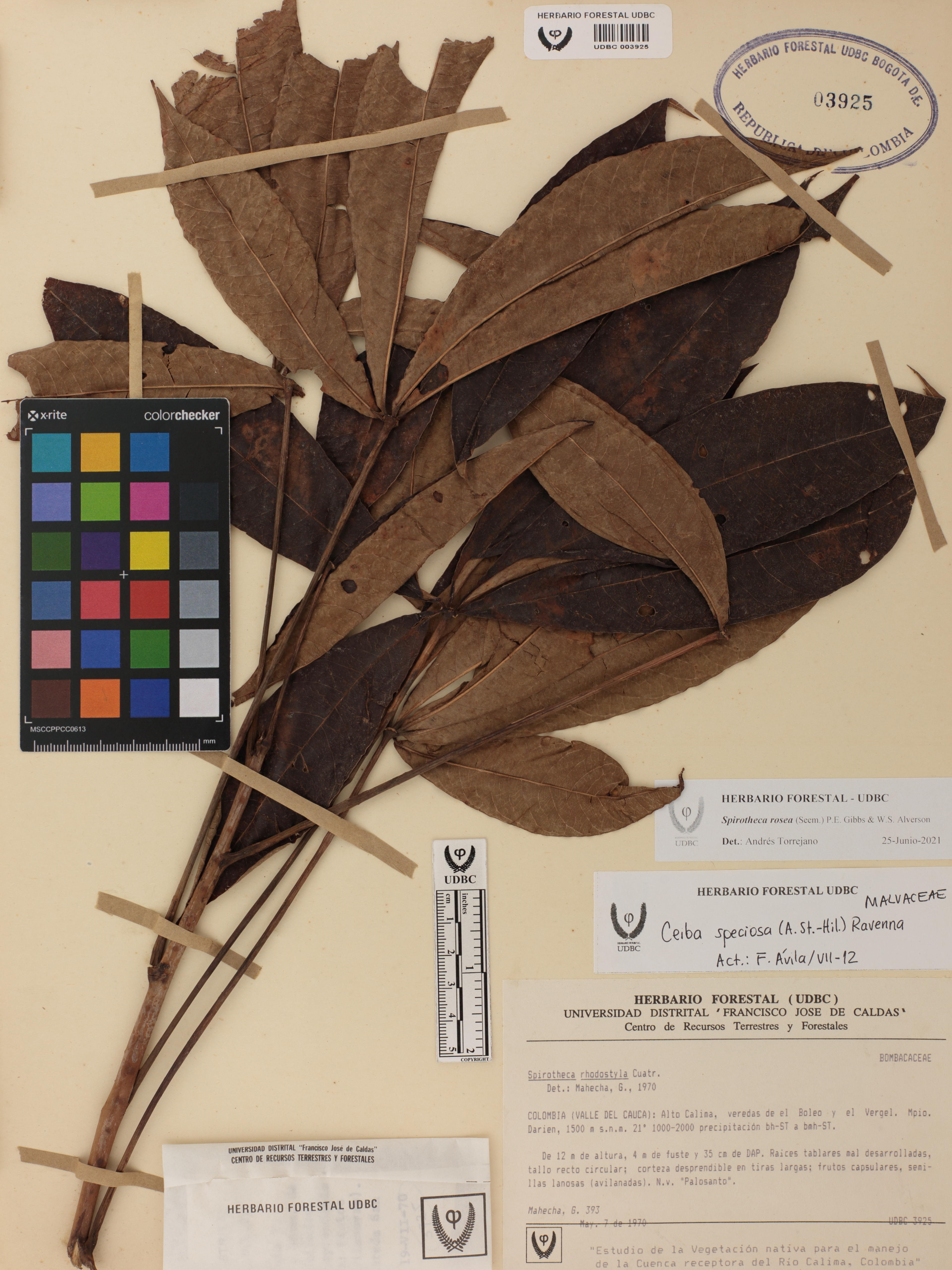 Fotografía del ejemplar Mahecha, G. 393, determinado como Spirotheca rosea en el año 2021