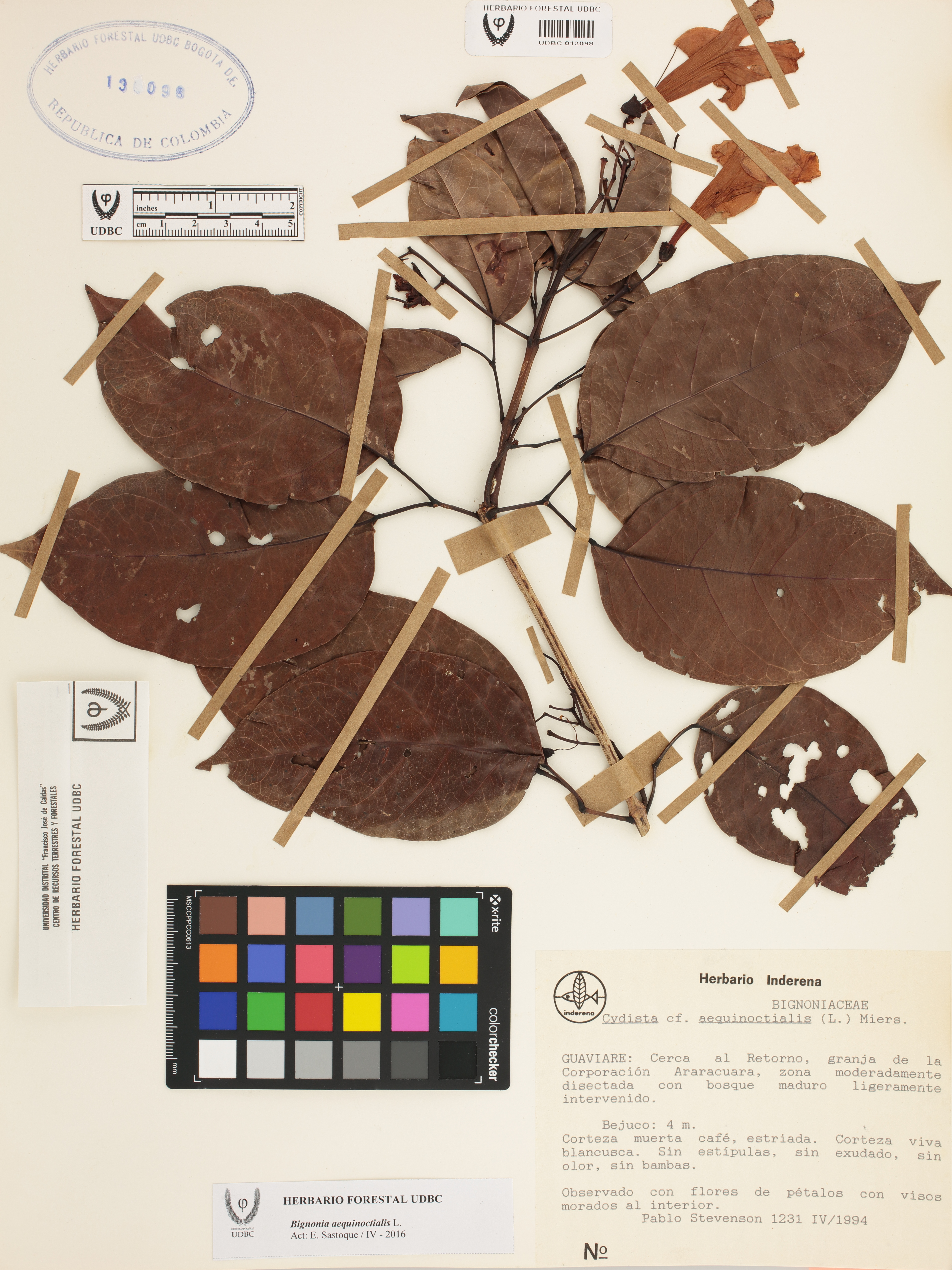 Fotografía del ejemplar Stevenson, P. 1231, determinado como Bignonia aequinoctialis en el año 2016