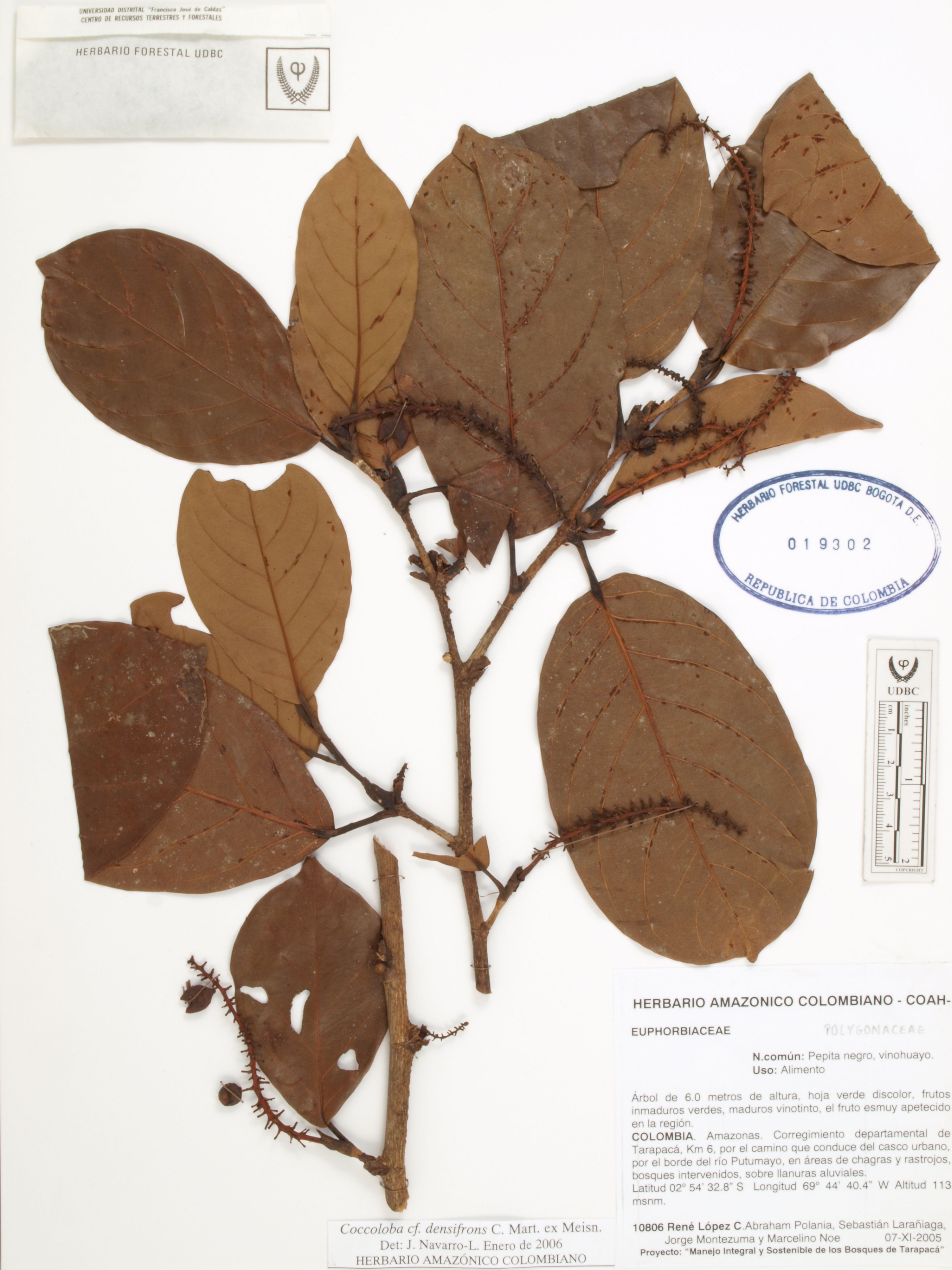 Fotografía del ejemplar López, R. 10806, determinado como Coccoloba densifrons en el año 2006