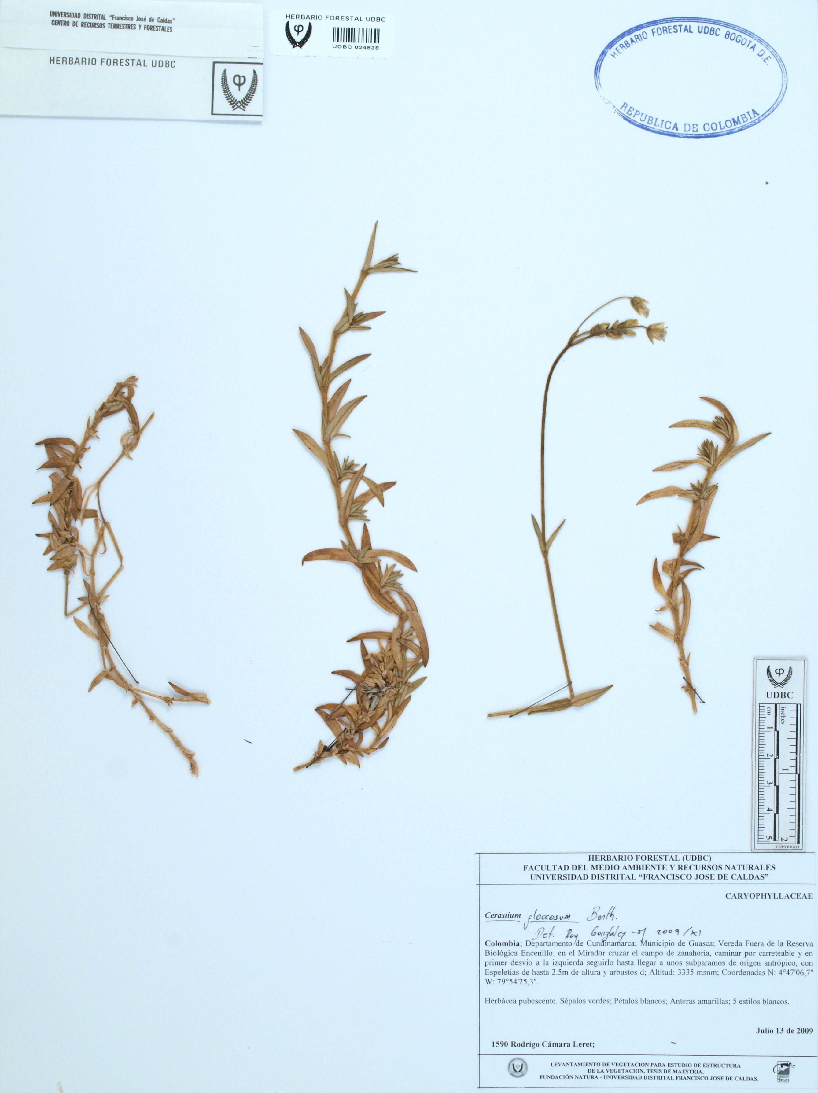 Fotografía del ejemplar Cámara, R. 1590, determinado como Cerastium floccosum en el año 2009
