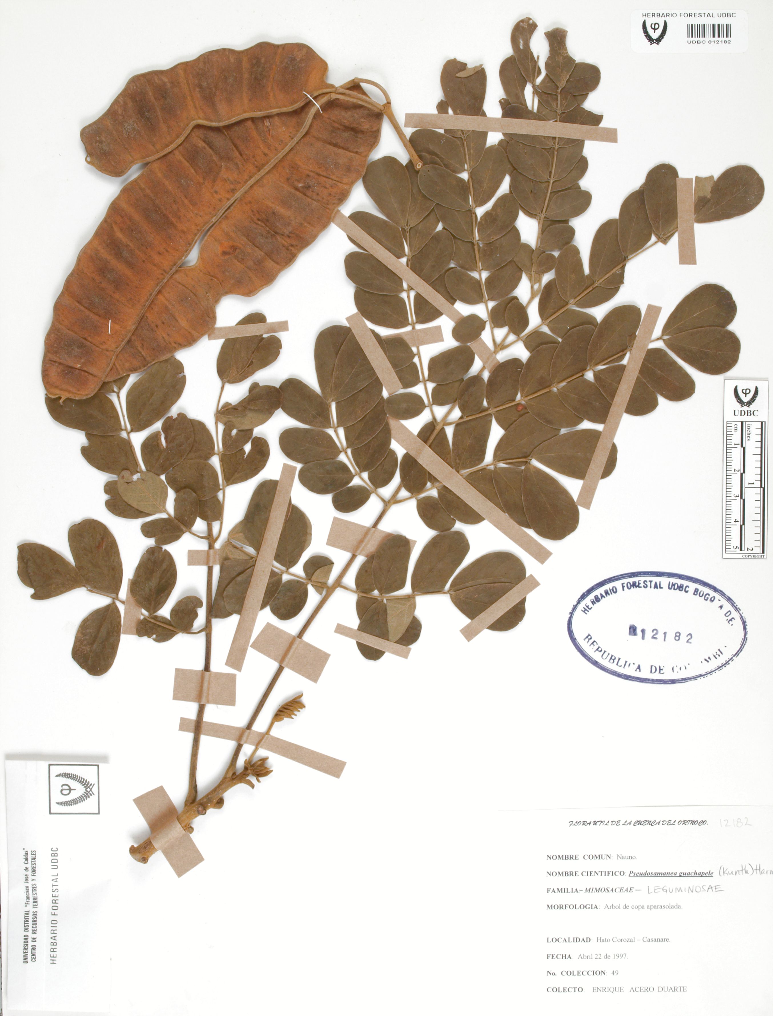 Fotografía del ejemplar Acero, E. 49, determinado como Pseudosamanea guachapele