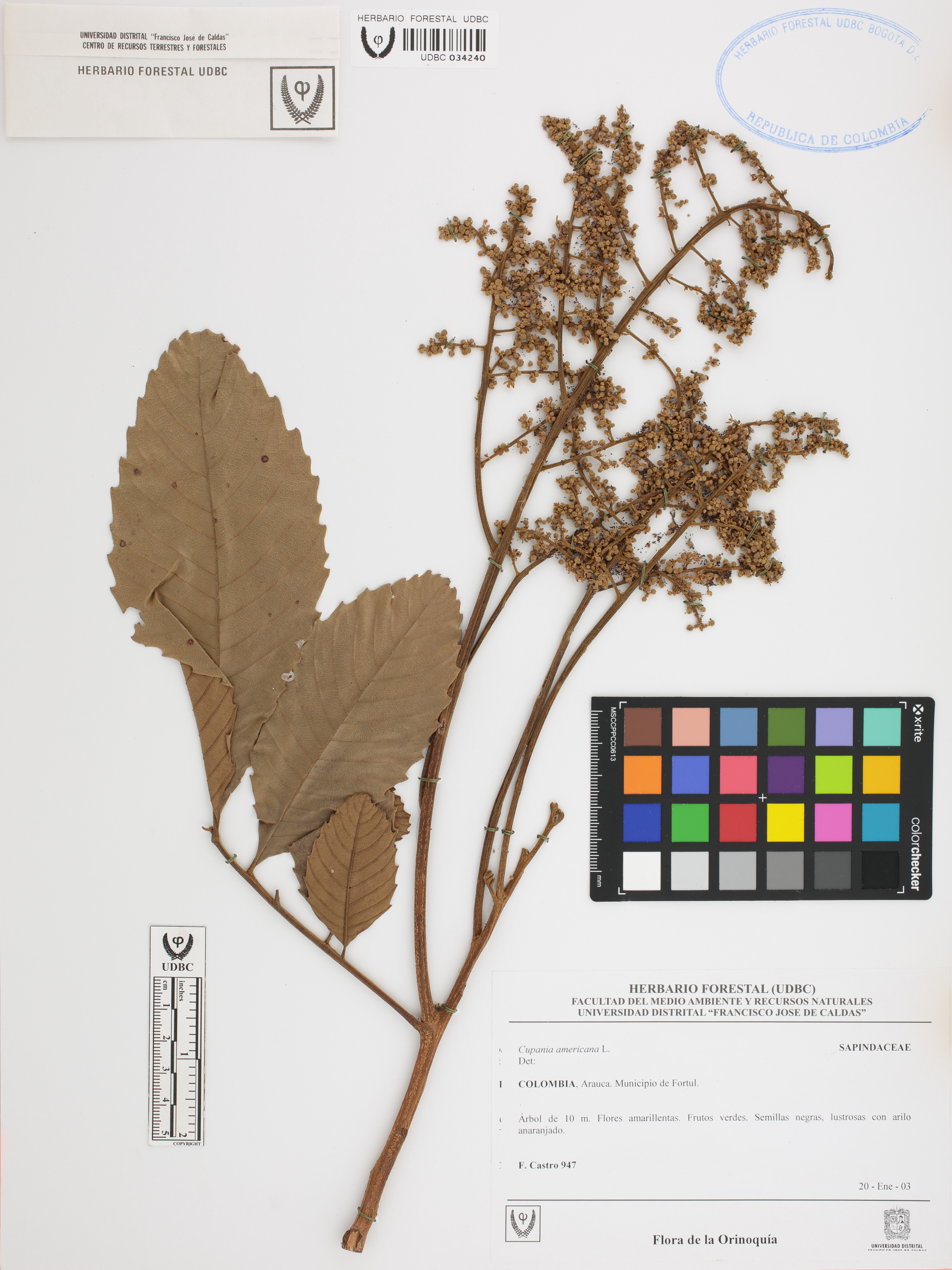Fotografía del ejemplar Castro, F. 947, determinado como Cupania americana