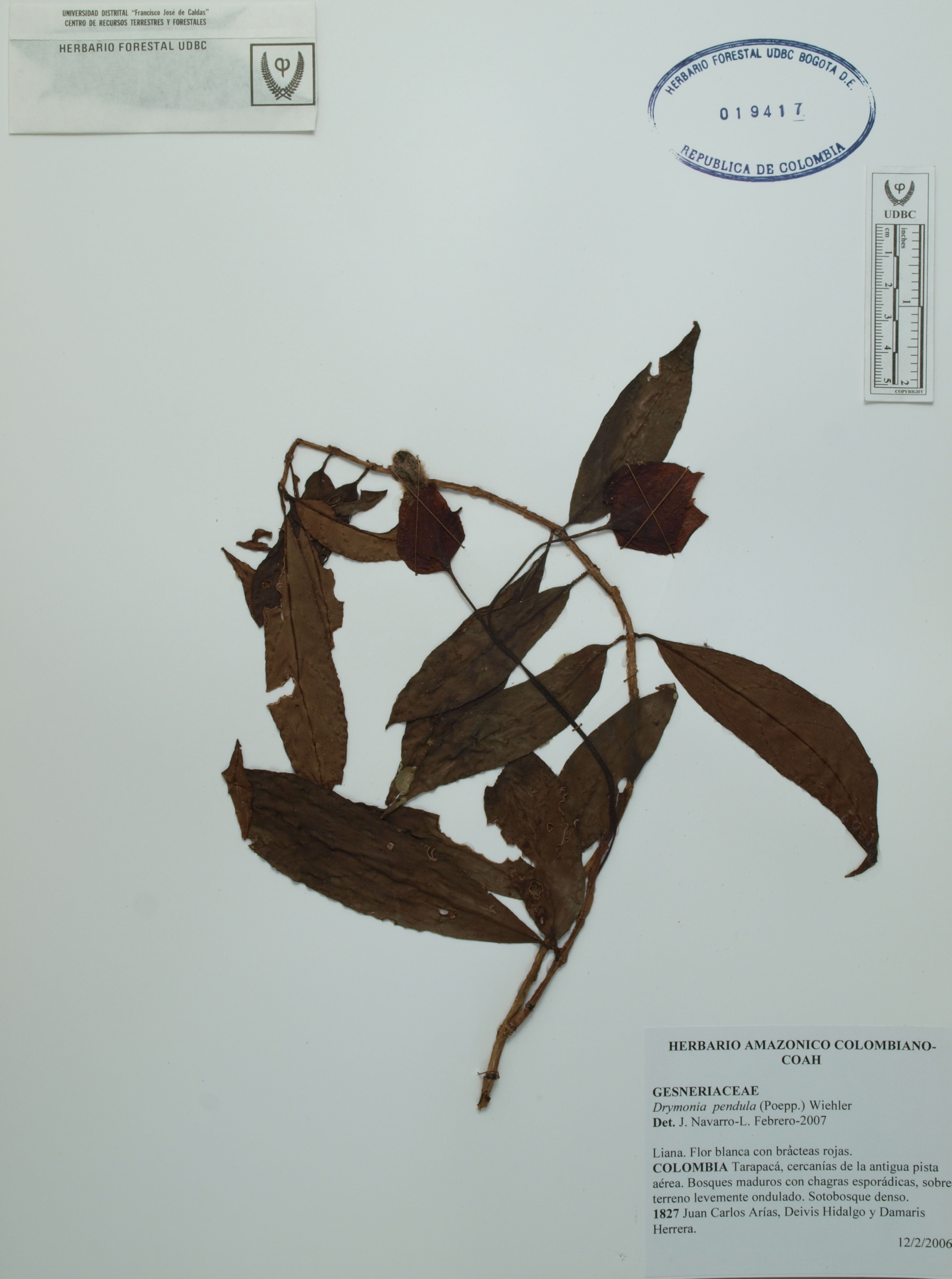 Fotografía del ejemplar Arias, J. 1827, determinado como Drymonia pendula en el año 2007